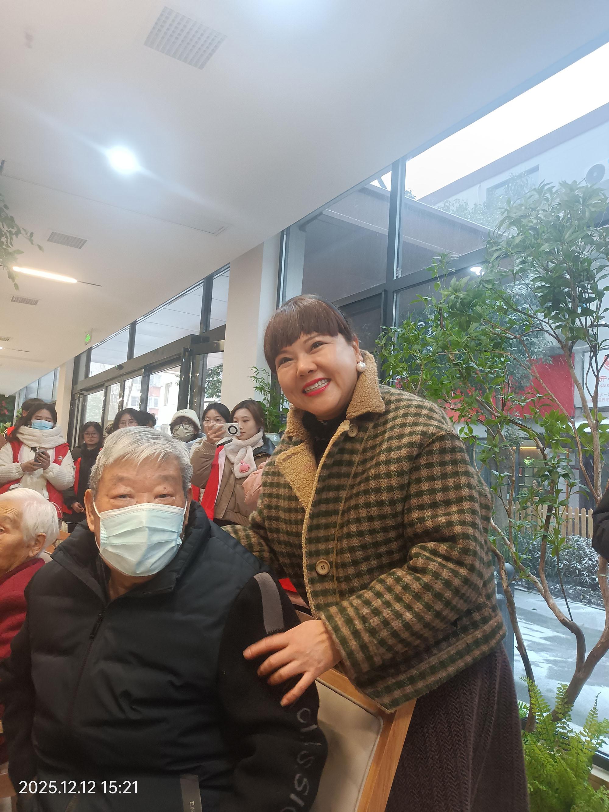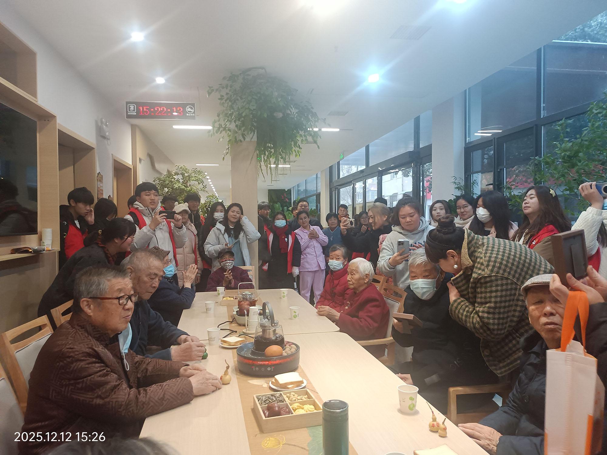 活动现场的暖意早已驱散了室外的寒凉。大学生志愿者们围坐在老人身边,有的紧握着老人的手细细闲谈,从日常起居问到过往趣事;有的俯身倾听老人讲述岁月故事,时不时点头回应、轻声附和。欢声笑语在房间里流转,将雪日的清冷彻底消融。学子们献上精心准备的歌曲《同手同脚》,婉转悠扬的歌声,让老人们听得频频点头;随后老人们也情不自禁地唱起经典红歌《东方红》,苍劲的嗓音与青春的唱腔交织共鸣,时光的韵味与朝气在歌声中交融。