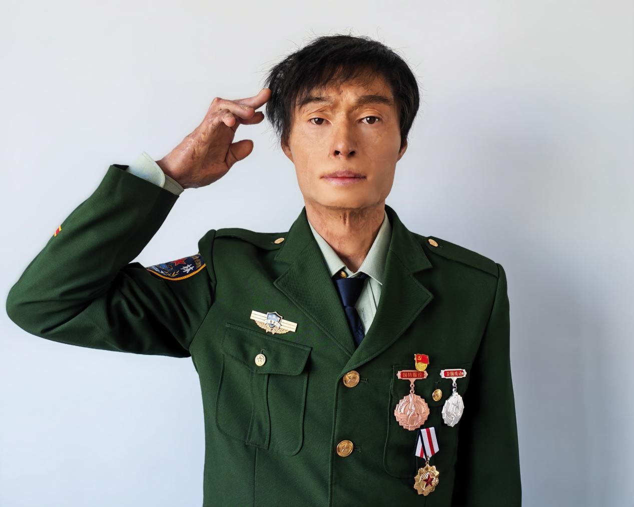 可他的伤势远比想象中严重,在医院连续下达三次病危通知书后李日飞被紧急转送到北京解放军304医院进行救治。在病房里,他昏迷了十天十夜,醒来时,看着镜子里面部 80% 被烧伤的自己,这个一向坚强的小伙子红了眼眶,但很快又握紧了拳头:“我不能倒下,战友还在等我,林海还需要我。” 在此后七年里,他经历了三十多次植皮与整形手术,每次手术都像烈火再一次灼烧皮肤,可他从没想过放弃。家人的陪伴、战友的鼓励,成了他在纱布与疼痛中一次次站起来的力量。