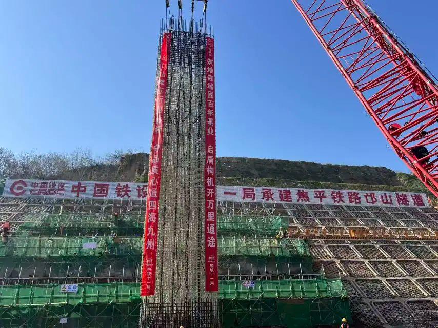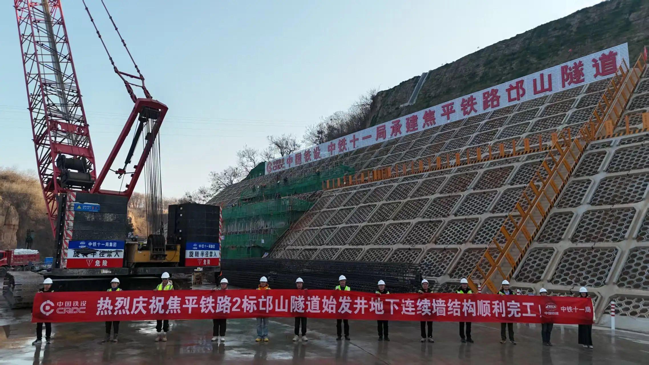焦平铁路邙山隧道盾构始发井地连墙浇筑完成