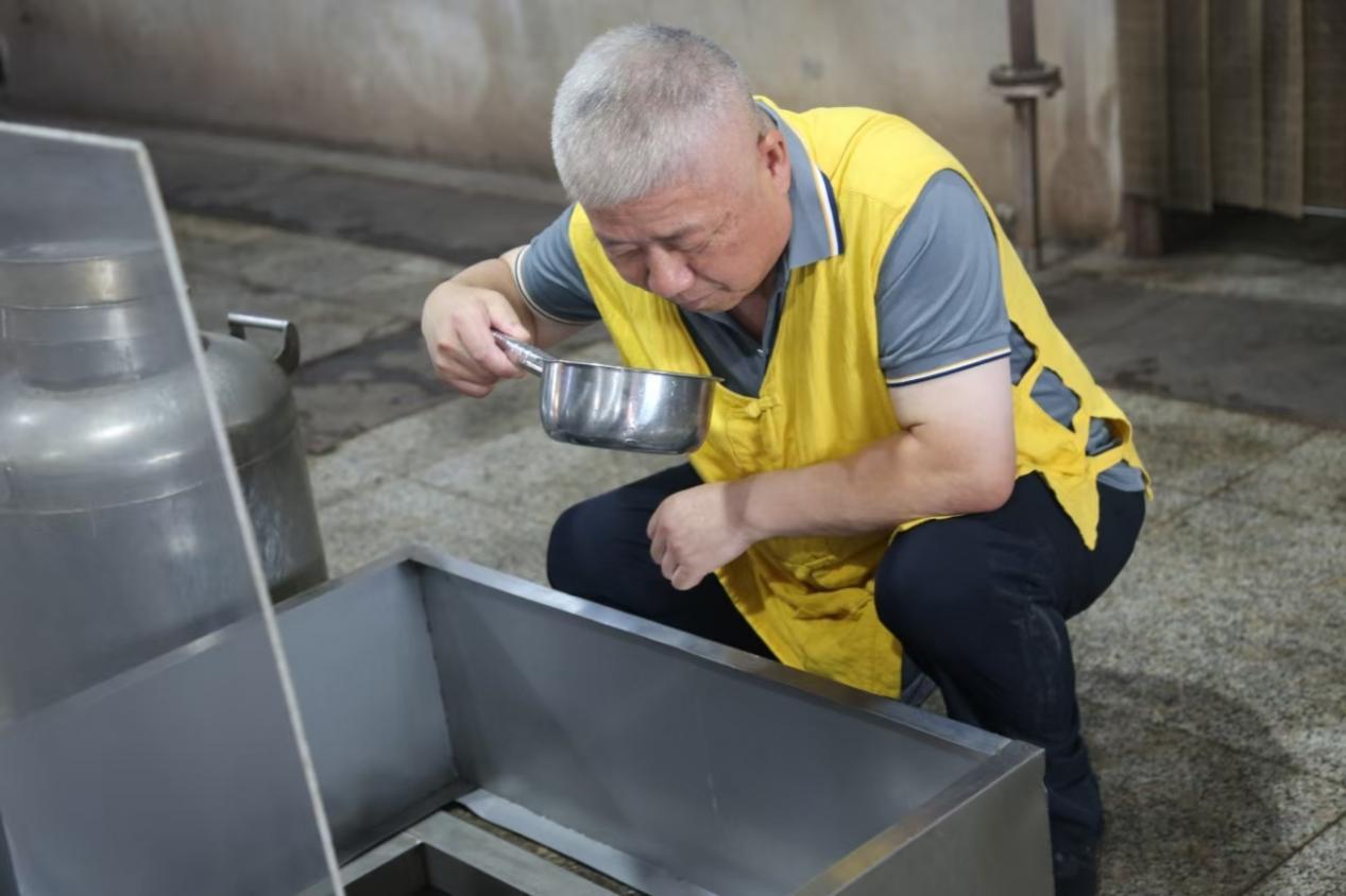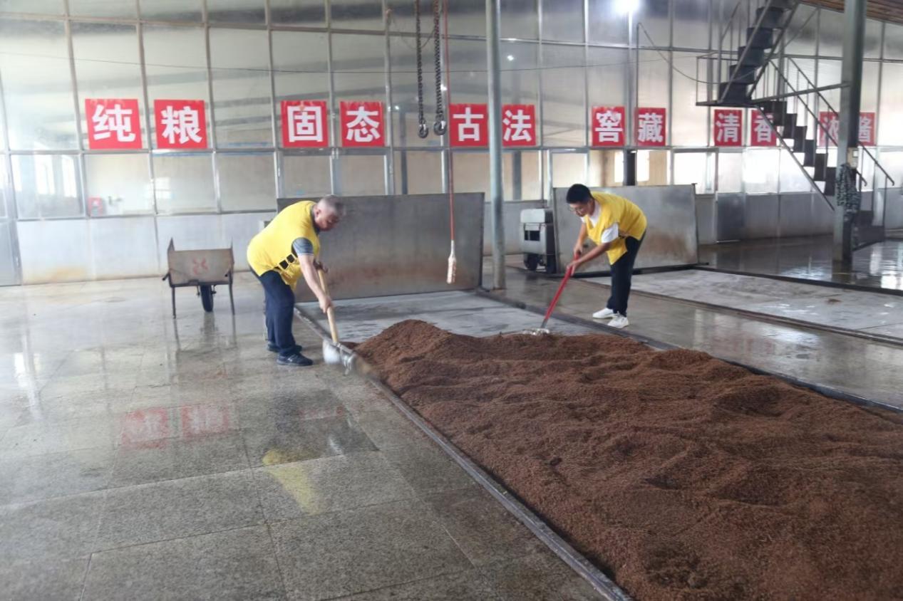 (图为新怀德酒业董事长高健正在与工人酿酒)