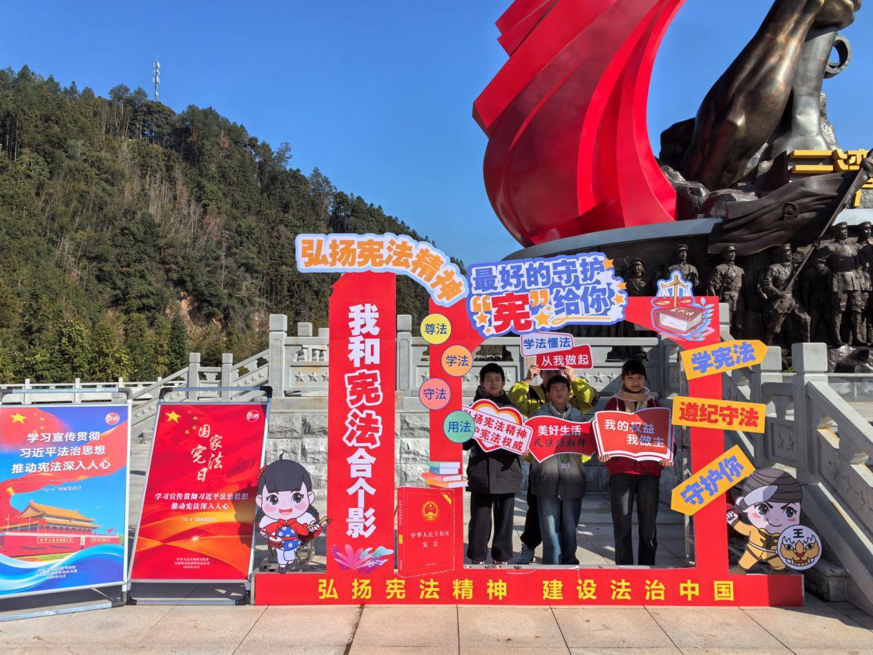 “红枫普法”志愿服务队紧扣“学习贯彻习近平法治思想 推动宪法宣传深入人心”主题,将法治宣传与红色文化深度融合,在景区广场搭起普法“嘉年华”。广场上,宪法知识大转盘、学法套圈圈、法律知识滚滚乐、法治谜语猜猜等互动游戏区域前人头攒动、笑声不断,成为景区里一道独特的风景线。