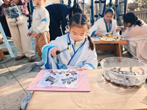 一位小男孩举着自己拓印好的作品兴奋地说:“这组叶子是我早上在小区捡的!原来它不是垃圾,还能变成这么美的艺术品!”这种“就地取材—亲手创作—情感投射”的闭环体验,让环保理念与文化自信在潜移默化中生根发芽。