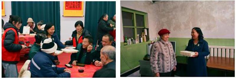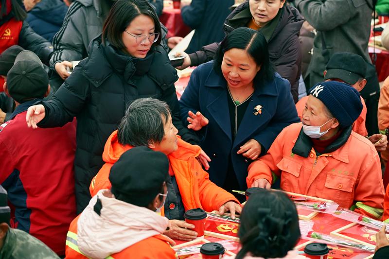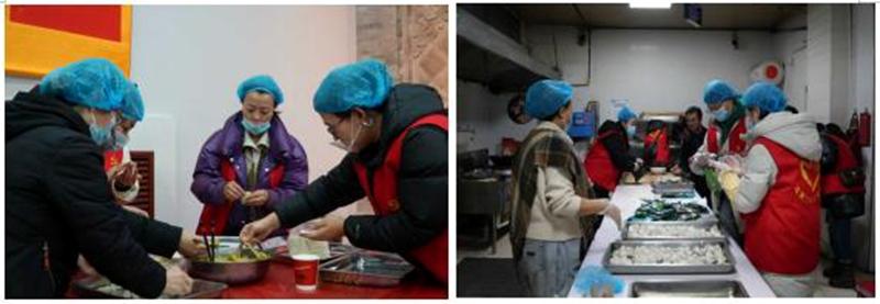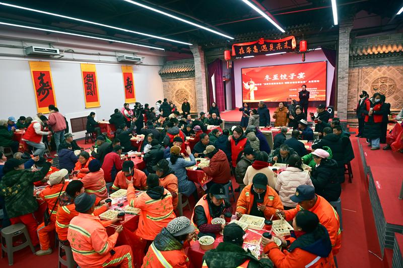 古城街道党工委坚持将党建引领贯穿活动全过程,充分发挥基层党组织战斗堡垒作用和党员先锋模范作用。活动前期,街道党工委组织召开专题部署会,明确“街道党工委统筹、社区党组织落实、党员干部带头”的工作机制,精准制定活动方案。针对辖区内出行不便群体,街道领导班子成员带领社区干部和网格员分五组为100户居民送去热气腾腾的饺子和福礼包。同时,在唐都礼堂设置了百人饺子宴席,邀请了120余位高龄老人、环卫工人共享盛宴。