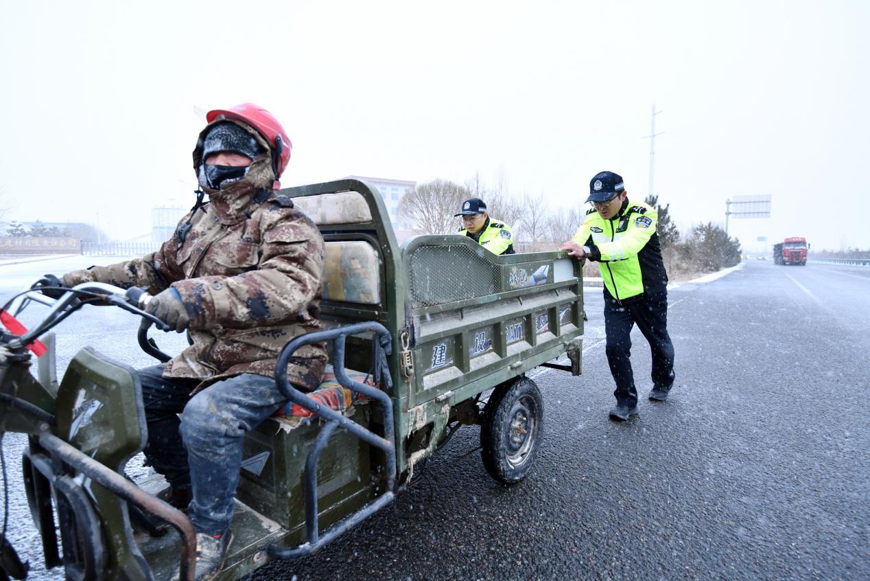 “交警同志,我的三轮车骑到半路没电了,你们能帮帮我吗?”16时许,一名群众跑来向正在312国道执勤交警王金山、师麟峰求助,当时过往货车一辆接着一辆呼啸而过,存在安全隐患。王金山、师麟峰迅速前往三轮车跟前,和群众一起将三轮车推至附近一家企业,并协调给三轮车充电。离开时,王金山叮嘱驾驶员骑行时佩戴好头盔,雪天路滑,一定注意安全。