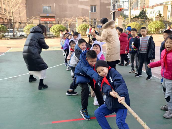 12月18日午间,烟台高新区第二实验小学校园篮球场上呐喊震天、鏖战正酣,第六届拔河比赛在此激情上演。赛事按年级分组展开巅峰对决,各班级代表队精诚协作、奋力拼搏,展现了“人绳合一”的磅礴气势;场边师生组成的啦啦队摇旗呐喊、声浪如潮,每一次胜负分晓都伴随着热烈的欢呼与真挚的喜悦。