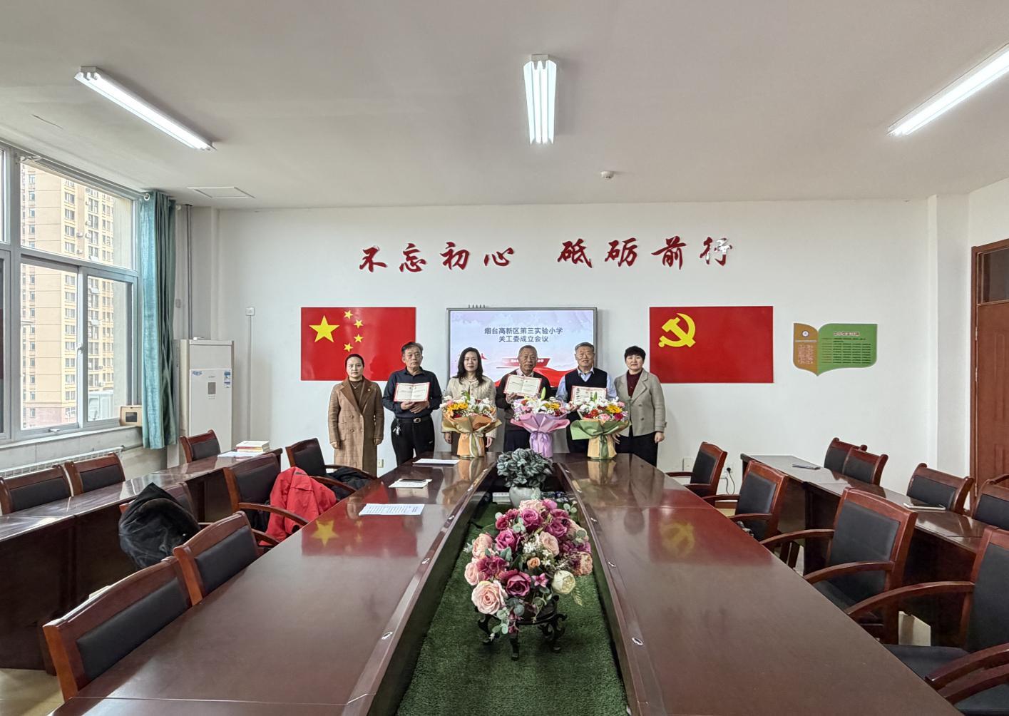 2025年12月19日,烟台高新区第三实验小学关心下一代工作委员会成立大会在学校会议室隆重举行。会上全体师生向受聘担任学校关工委成员的三位老干部孙成松、李居彬、郝建波同志表示了热烈的欢迎和崇高的敬意。这标志着学校在整合资源、凝聚力量,促进青少年健康成长方面迈出了坚实的一步。