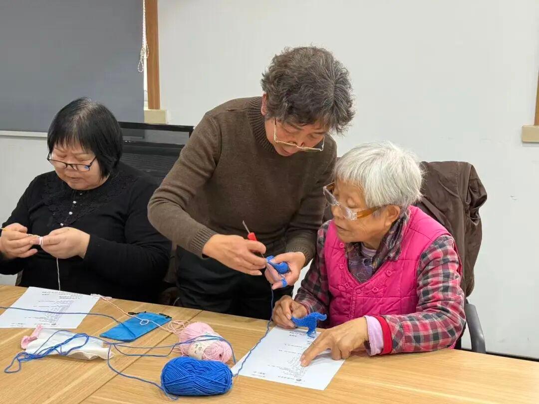 活动现场暖意融融,彩色毛线团、钩针整齐摆放,数十位居民围坐一堂,既有经验丰富的钩织达人,也有零基础的新手爱好者。志愿者老师从起针、锁针等基础技法入手,耐心讲解马年主题挂饰的制作要点,手把手指导大家绕线、挑针、塑形。