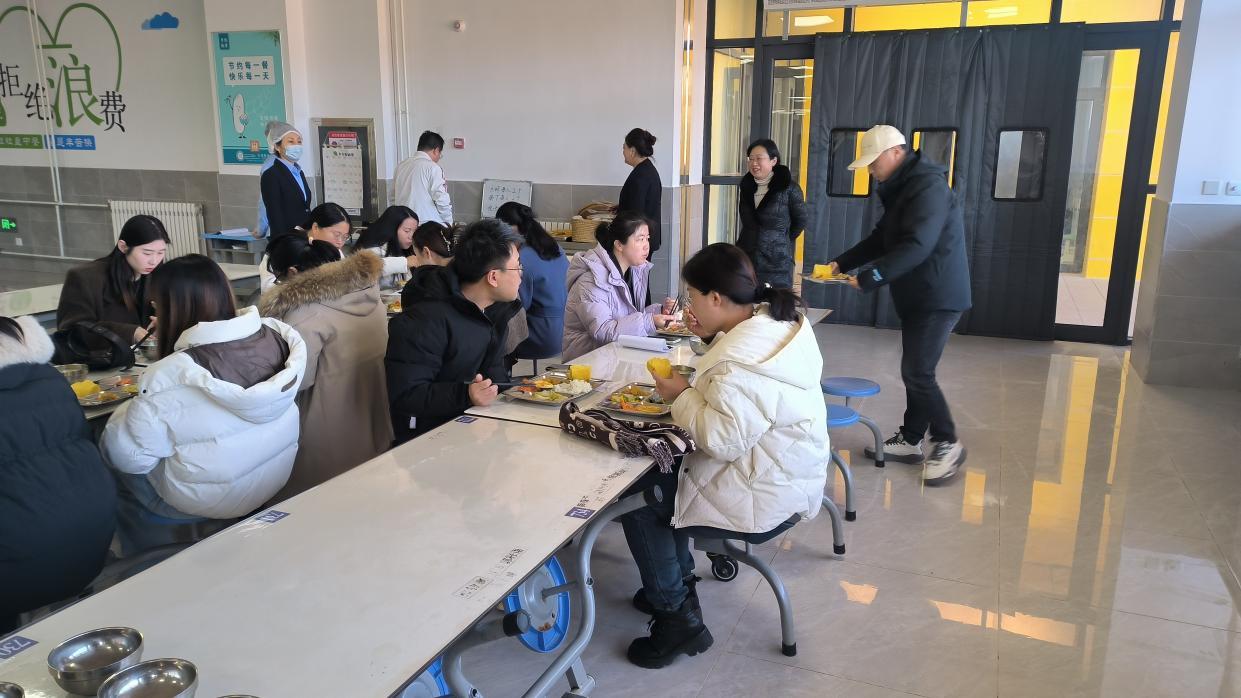 午餐时段,家长代表化身"陪餐员",与学生共同体验营养餐食。家长们通过"看、闻、品"多维度评估,对食材新鲜度、菜品搭配和餐食温度给予高度评价。