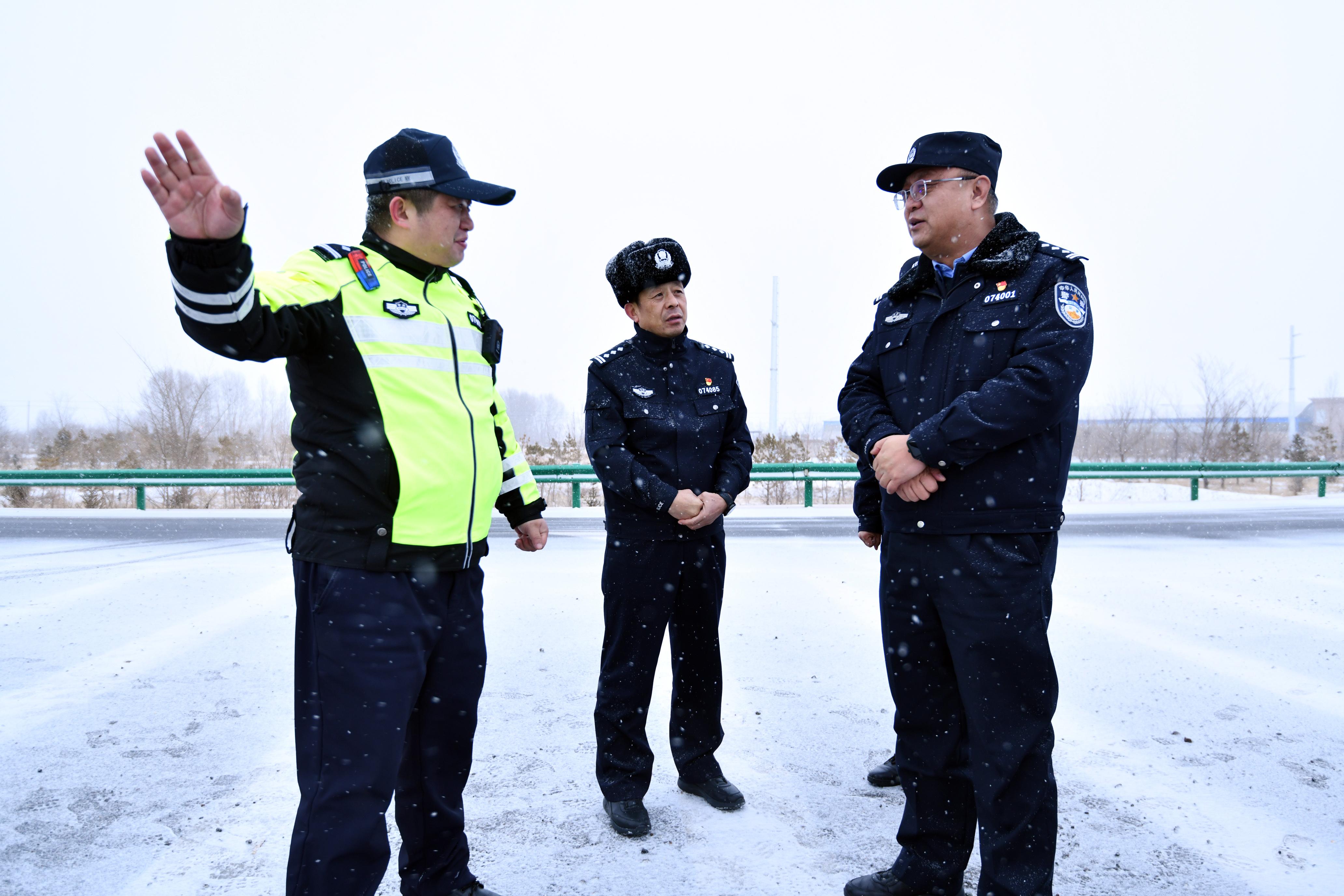 甘肃张掖市临泽县公安局主要领导督导降雪天气道路交通管控工作