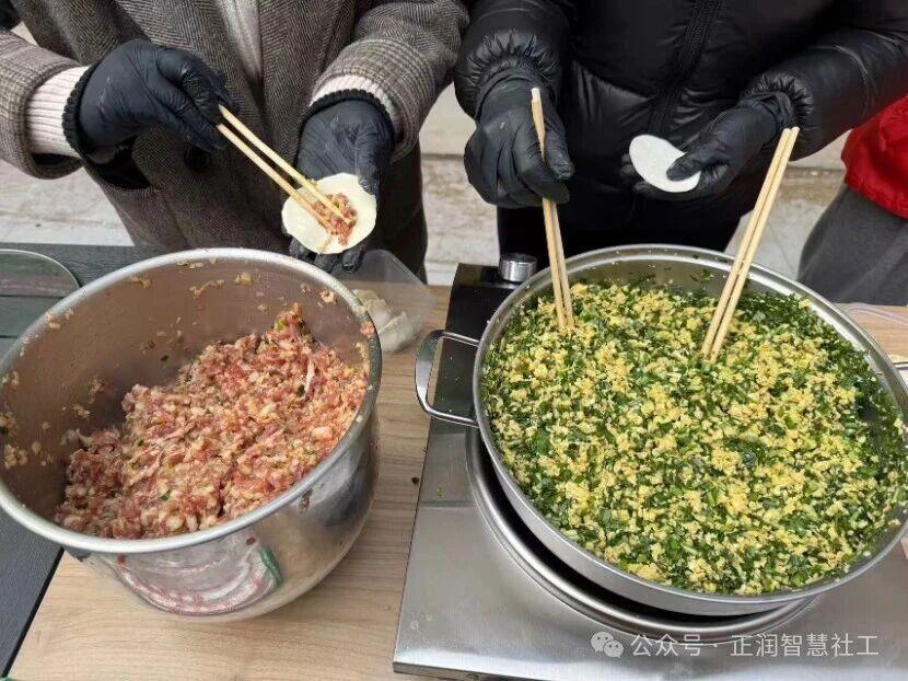 活动前期,社区工作人员与社工提前摸排社区困难群体情况,精心准备了饺子馅料、粮油、保暖被、生活用品等慰问物资。活动现场,志愿者们分工协作,有的忙着调配饺子馅、包制冬至饺子,有的仔细登记慰问名单、分装物资,现场一派忙碌又温馨的景象。