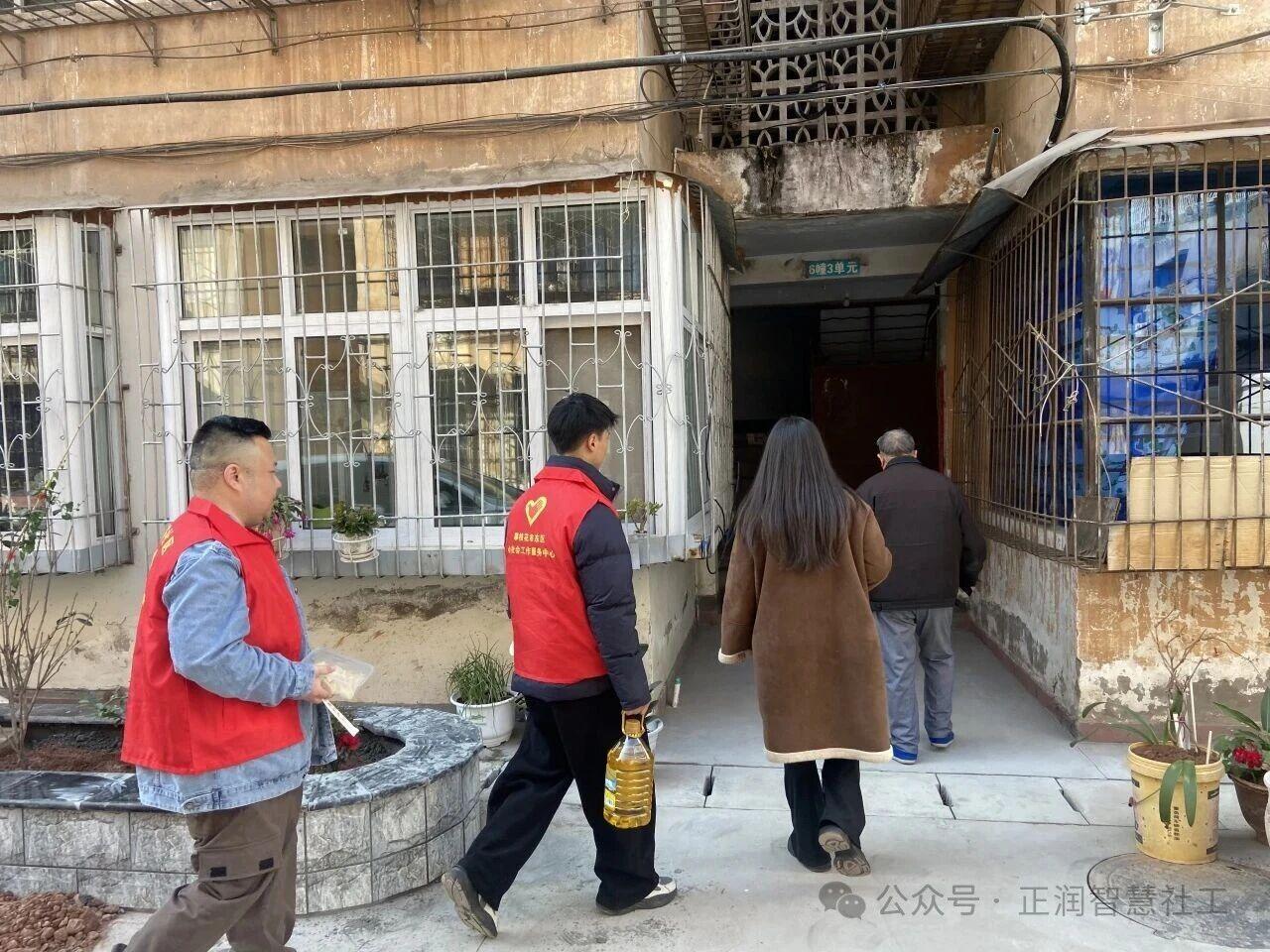 随后,社区工作人员与志愿者组成慰问小组,挨家挨户走进独居老人、困难家庭家中。大家与居民亲切交谈,仔细询问老人的身体状况、生活需求,为他们送上慰问物资和冬至祝福。看到志愿者们的到来,一位独居老人激动地连连道谢,朴实的话语里满是感动。