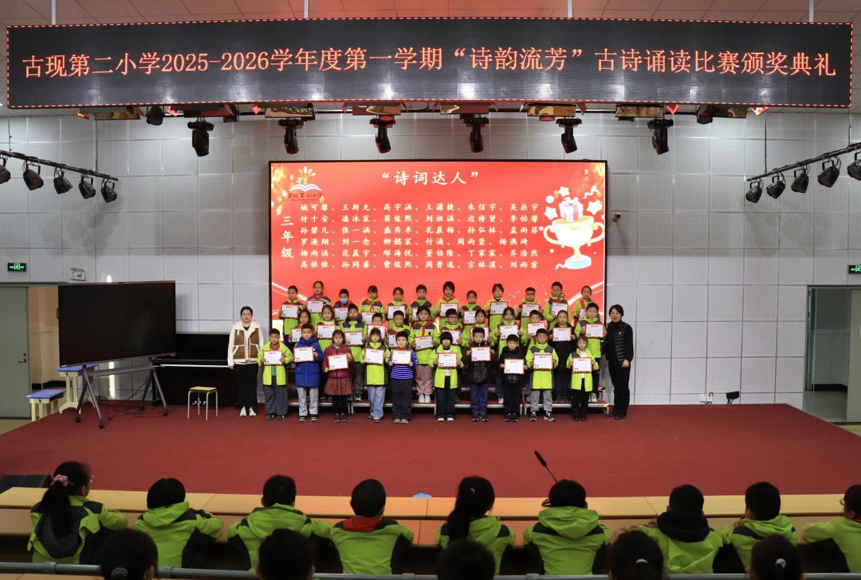 此次诗词诵读比赛,不仅为学生搭建了展示自我的平台,更让孩子们在诵读中感受中华诗词的韵律之美与文化底蕴,有效推动了校园书香文化建设。今后,古现第二小学将继续以经典诵读为载体,让诗词浸润童心,使书香馥郁校园,让经典的种子在孩子们心中生根发芽,让千年文脉,弦歌不辍!(通讯员:张健)