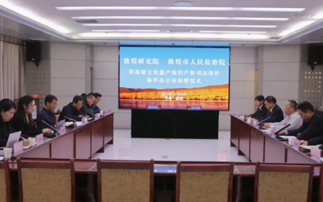 2025年12月25日,“莫高窟文化遗产知识产权司法保护协作办公室”在甘肃省酒泉敦煌市正式揭牌,敦煌研究院、敦煌市检察院双方代表签署框架协议,进一步加强检察工作与学术研究在守护千年文化遗产领域的深度融合。
