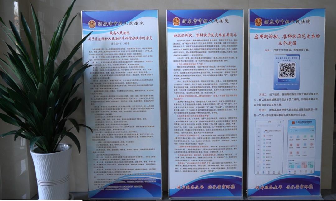 酒泉法院在诉讼服务中心、辖区综治中心常态化配备要素式诉状模板,干警耐心指导当事人填写,让群众“看得明白、填得准确、用得方便”。“有了模板和指导,写诉状不再犯怵”,成为群众的普遍反馈。