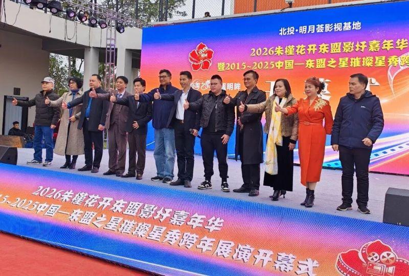 歌圩里的美妙声音都在影圩的浩瀚星辰里!2026年1月2日下午,2026朱槿花开东盟影圩嘉年华暨2015-2025中国—东盟之星璀璨星秀跨年展演开幕式在“北投·明月荟影视基地”南区大舞台盛大开幕,相关主承办单位及各界嘉宾代表近500人出席开幕式并品鉴了曌靓·娅王本草药食同源养生晚宴。