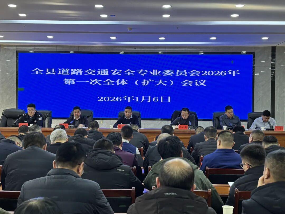 为扎实做好岁末年初道路交通安全管理工作,有效防范化解安全风险隐患,1月6日,甘肃省陇南宕昌县召开道路交通安全专业委员会2026年第一次全体(扩大)会议。县委常委、政法委书记蔡鸿鸣,县政府党组成员、二级调研员苏继成参加会议并讲话,会议由县政府副县长、县道专委主任、县公安局党委书记、局长巩小军主持,县道专委各副主任及成员单位主要负责同志,各乡镇主要负责同志,交管大队班子成员,各派出所负责人,金城公交公司等4家重点客运企业负责人参加会议。