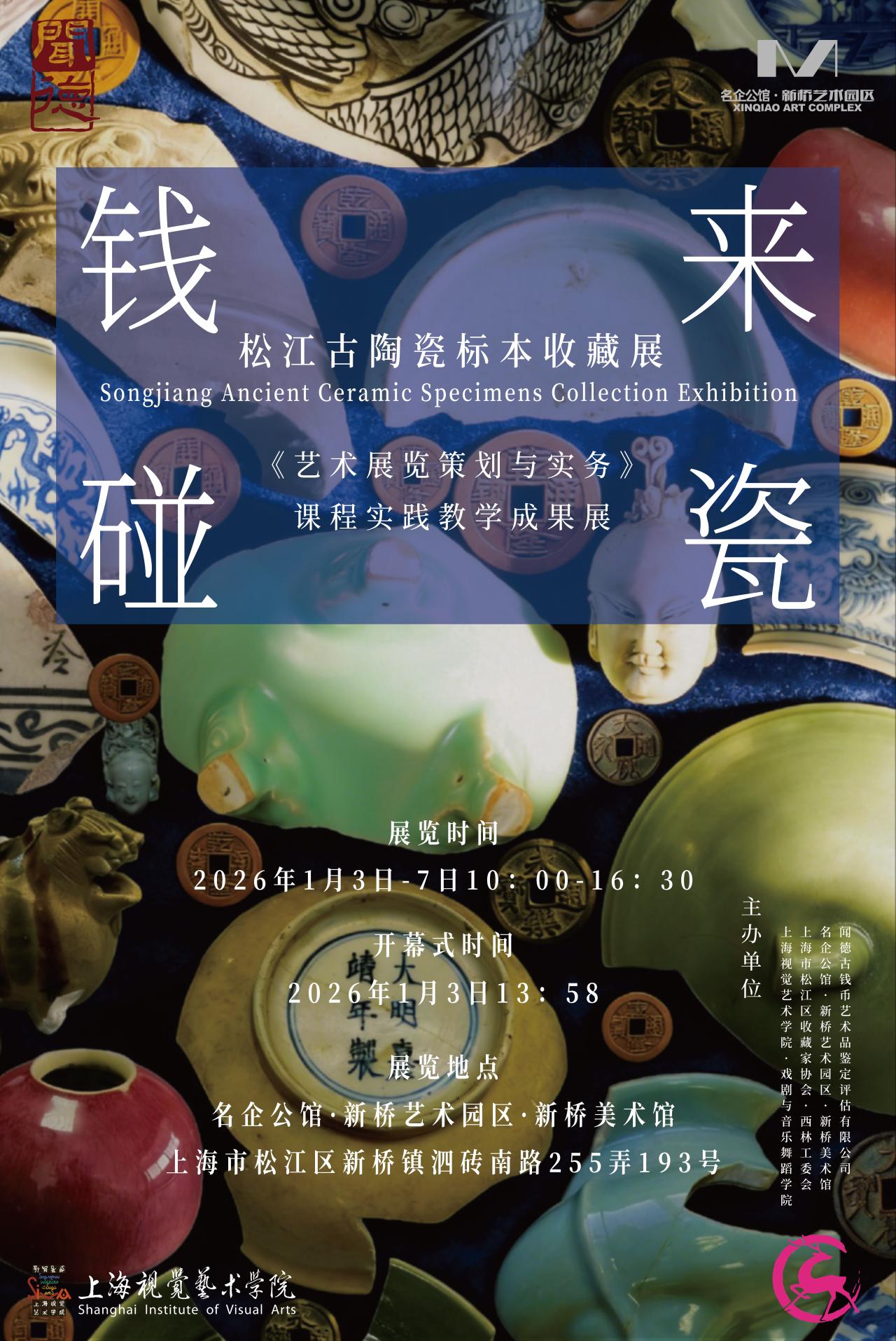 1月3日,一场别开生面的古陶瓷标本收藏展在松江新桥美术馆拉开帷幕。本次展览由上海视觉艺术学院联合松江区收藏家协会、新桥美术馆与闻德古钱币艺术品鉴定评级公司共同策划推出,是艺术高校专业教学与艺术机构文化服务生产深度融合的创新型成果。展览以“收藏与在地叙事”为主线,通过梳理与展示松江本土收藏家的珍贵古陶瓷标本藏品,呈现了一场融合历史脉络与当代审美的文化对话。