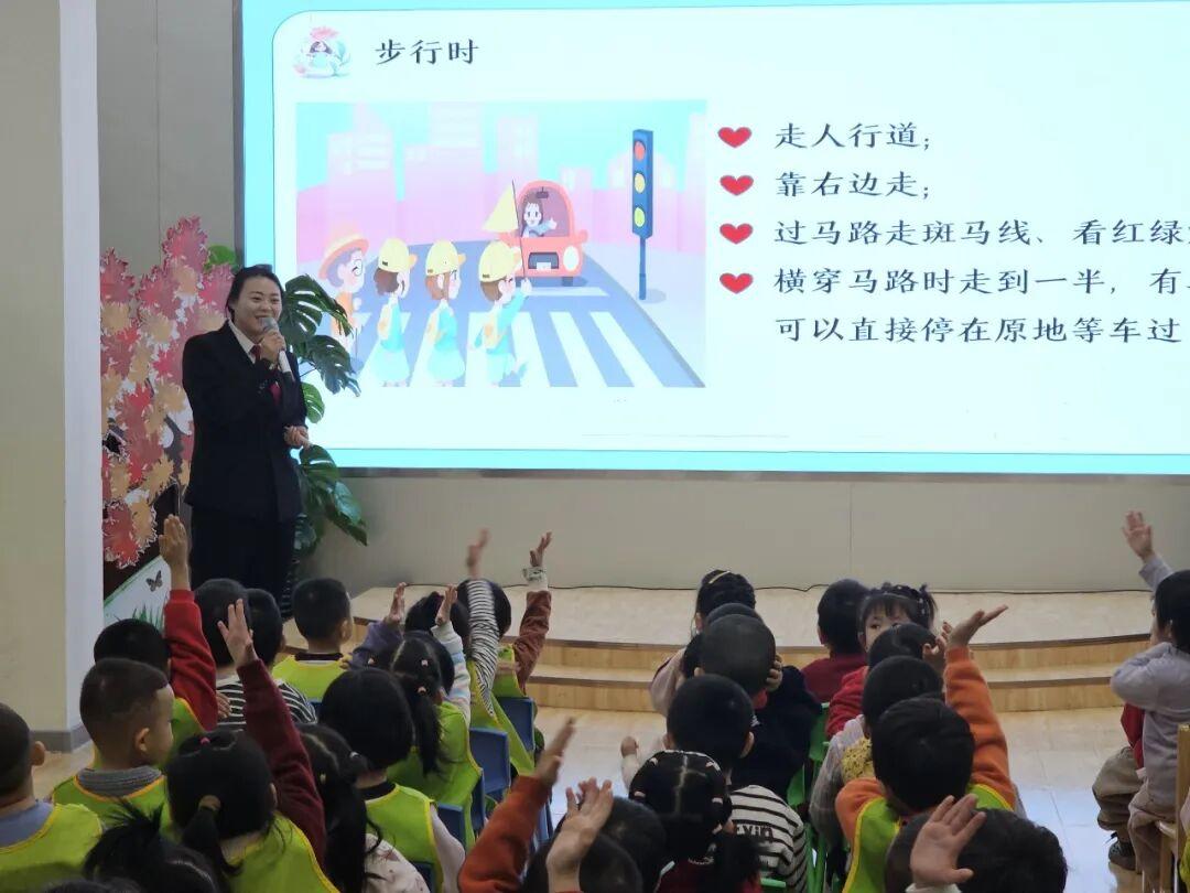 宣讲活动中,干警们结合幼儿的年龄特点和认知规律,用通俗易懂的语言、生动形象的案例,通过情景模拟、儿歌记忆等方式,教小朋友们认识红绿灯、斑马线,带着大家模拟“过马路左右看”的正确做法,把“红灯停、绿灯行”的出行准则融入趣味互动,让孩子们在玩中学、学中记。