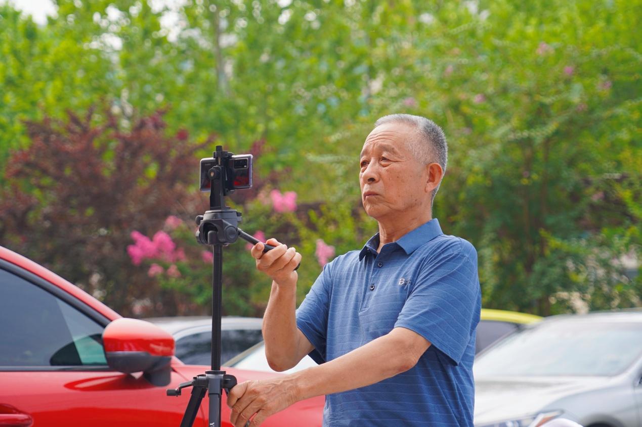 在山东省济南市济阳区的社区村落、广场校园、大街小巷,人们总能看到一个步履匆匆却眼神明亮的忙碌身影。他尽力挺直着脊背,肩上挎着一个塞得满满当当的帆布包,里面装着采访本、照相机、无人机。他穿梭在人群中,无偿为群众记录美好,为城市、农村、社区和学校留存珍贵影像。他记录时代变迁,定格奋斗瞬间,留住浓浓乡愁;他以镜头传递温暖,用光影讲好百姓故事,凝聚起群众奋进力量。他,就是济阳区退休干部、共产党员、光影志愿者孙延玉。