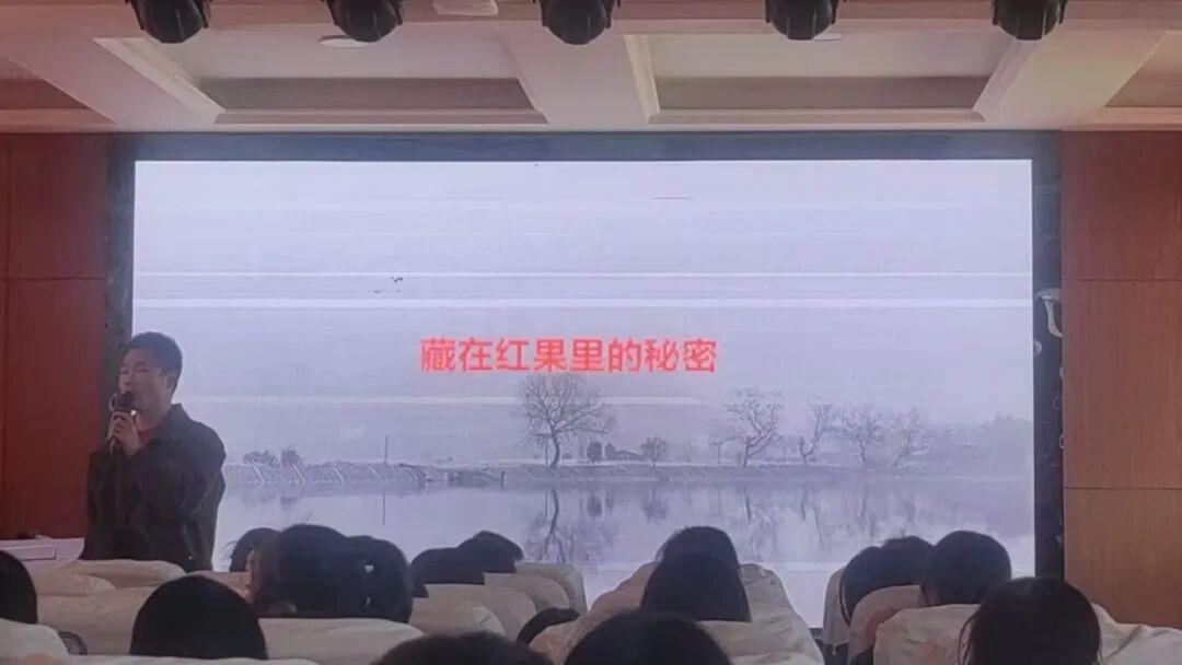 本次讲堂由“思政讲师团”成员——姚立烨主讲,他围绕《藏在红果里的秘密》这一主题,为学生带来了一堂有温度、有深度的思政课。课程从家乡的茅楂会入手,引导学生从一粒红果中感悟诚信、传承文化。