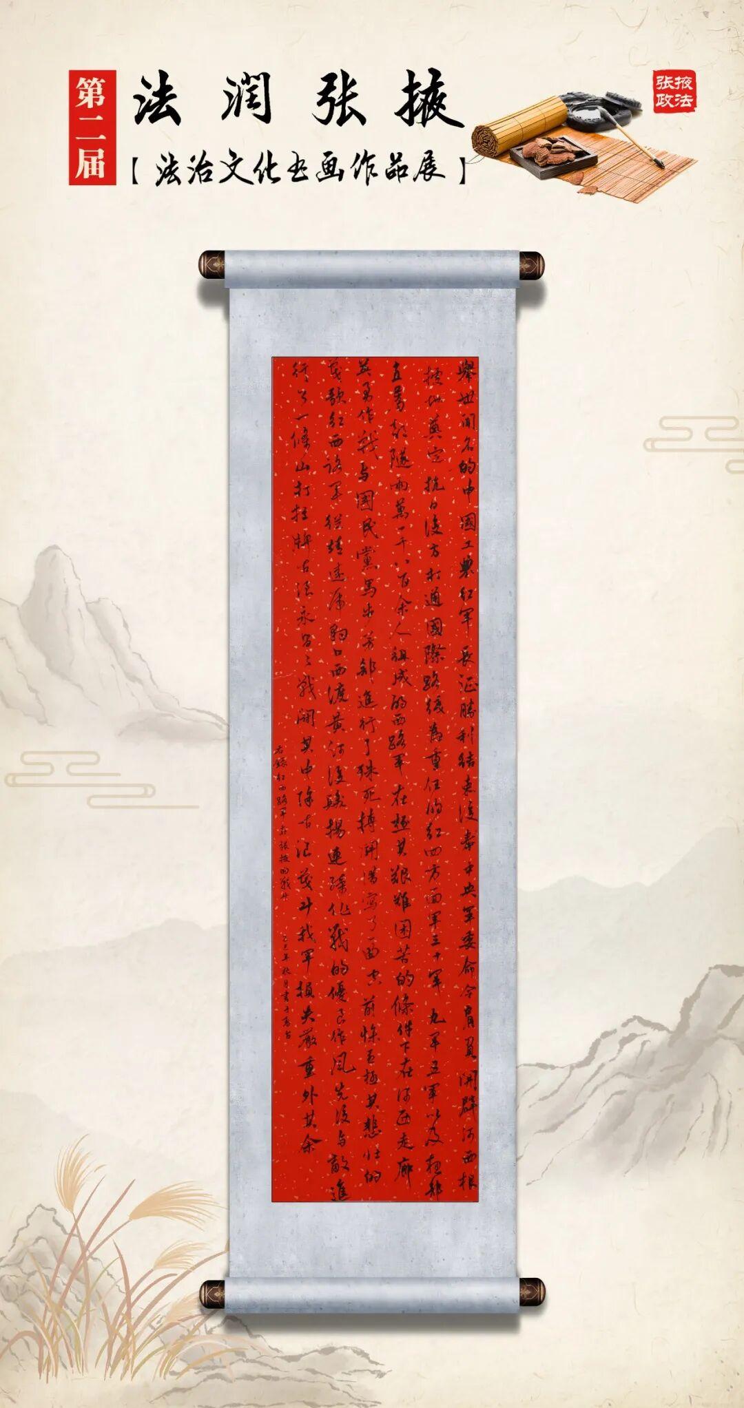 在全市上下深入学习贯彻党的二十大和二十届四中全会精神之际,为认真贯彻落实中央全面依法治国工作会议精神及市委依法治市办相关工作部署,进一步加强对全市广大法学法律工作者的思想政治引领工作,2025年12月9日—12月18日,由甘肃省张掖市委政法委、市委宣传部、河西学院主办,市法学会、河西学院法学院、市文联承办,市司法局、河西学院美术学院、市书法家协会、市美术家协会协办,共同举办了以“红色法治”为主题的第二届“法润张掖”法治文化书画作品展。