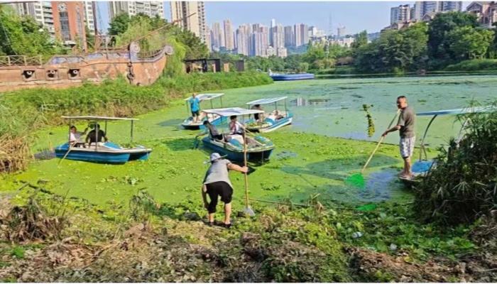 南岸区铜元局街道融侨半岛片区集娱乐、运动一体的公园,覆盖周边数万居民。融侨公园人工湖无源头活水,湖水多年未更换,富养化严重,藻类横生,生态失衡,今年夏季曾出现湖内鱼类大量死亡的情况,严重影响了周边居民生活,为此铜元局街道会同区城管局下大力气对该公园和湖泊的系统性治理。