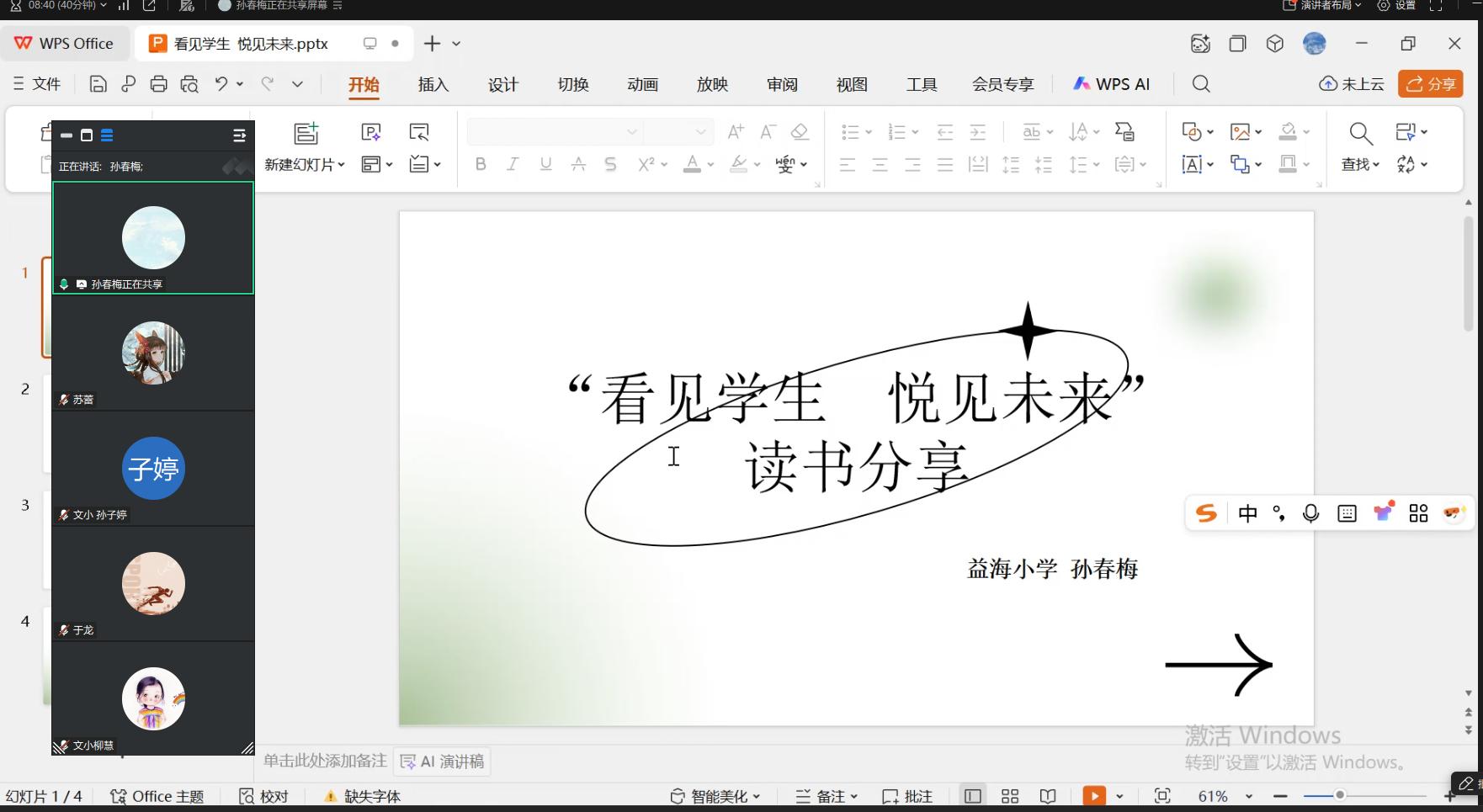 阅读,是教师成长的阶梯,是教育智慧的源泉。为促进集团校教师深度交流与情感联结,打造学习型教师团队,近日,文化街道中心小学、益海小学、五里头小学联合开展了以“看见学生,悦见未来”为主题的线上读书交流活动,围绕《看见每一个学生》,各校读书分管领导、青年教师共同参与这场思想的碰撞。