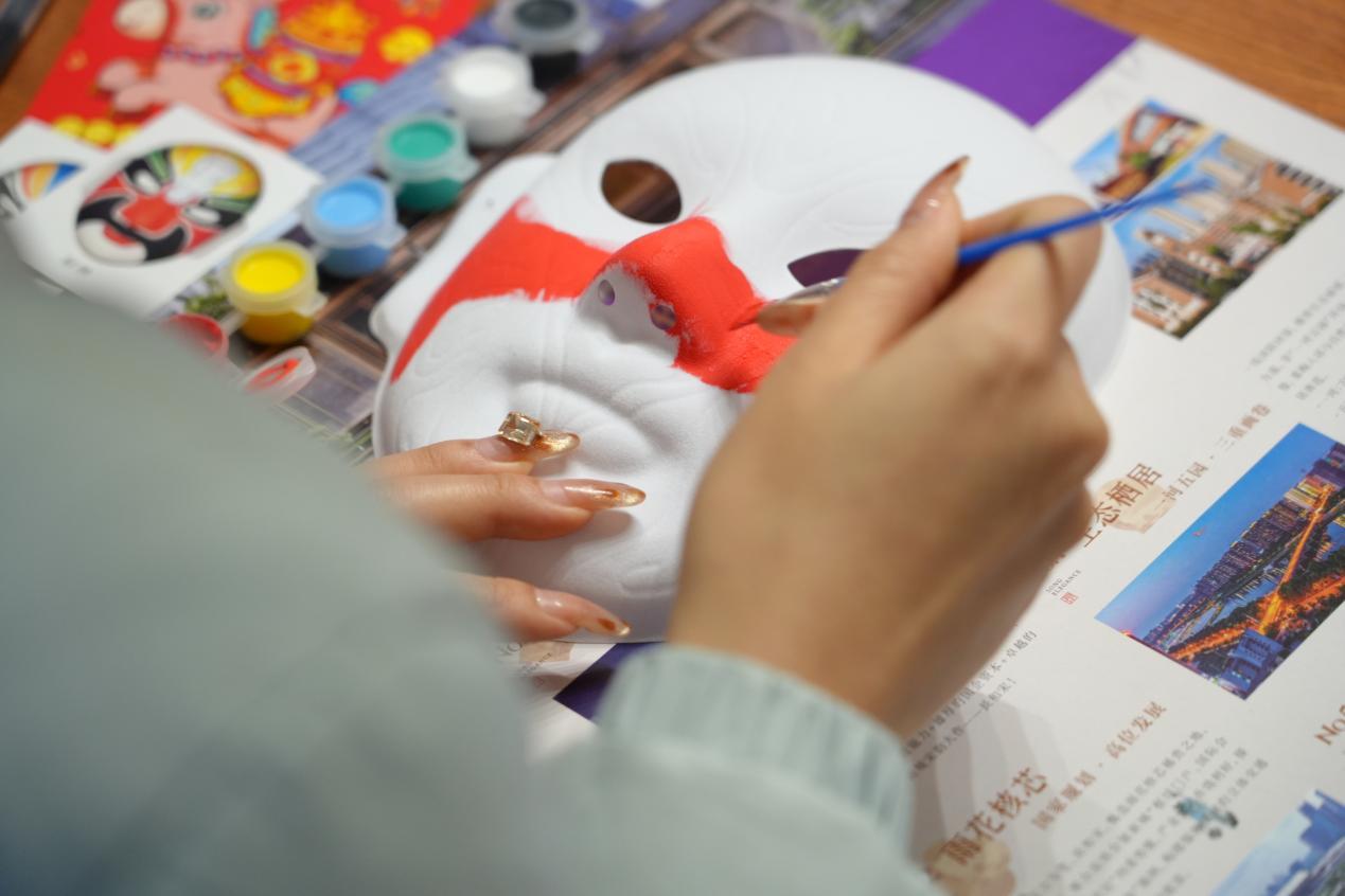 活动现场分为室内体验与户外汇演两大部分。上午,三大沉浸式体验区人头攒动。“笔墨传福”区,志愿者引导居民亲手拓印“福”字;“民俗拾趣”区,脸谱绘制与拨浪鼓制作吸引了众多家庭参与。一张张专注的脸庞,一次次小心翼翼的描画,传统非遗在指尖“活”了起来。
