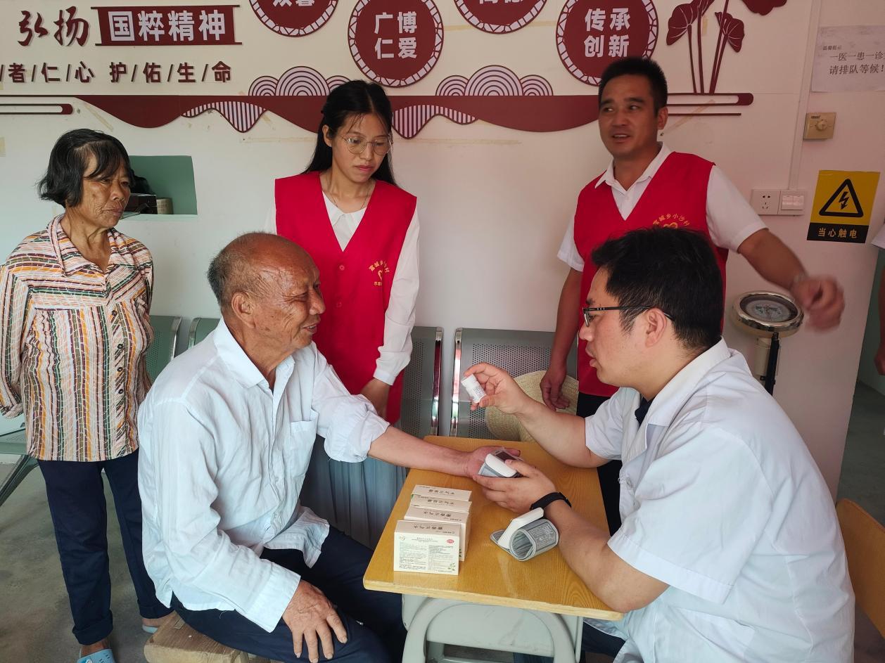医疗与教育帮扶同步推进。学院校医院支部每季度驻村义诊。2024年夏诊,黄医生发现吴国养老人高血压却未规律服药,遂详细书写用药指南并留下联系电话。校医院捐赠感冒药、降压药、碘附等常备药两箱。此后吴国养常微信报血压,“黄医生,今天130/80,稳得很!”