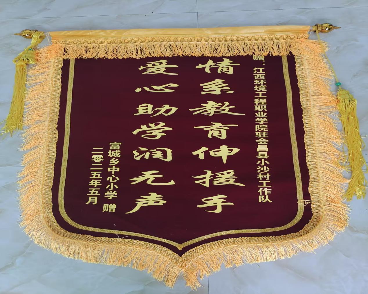 针对28名留守儿童课后托管难题,学院捐资6万元将旧校舍改造成“童心港湾”,内设阅读、心理辅导和活动区。学院七色堇、丁香花志愿服务队定期教绘画、手工、讲红色故事,端午包粽、中秋做饼,陪伴温馨时光。留守儿童小宇从沉默寡言到主动互动,制作小灯笼赠志愿者并表示“以后也要帮助别人”。2025年,富城中心小学赠锦旗“情系教育伸援手,爱心助学润无声”。