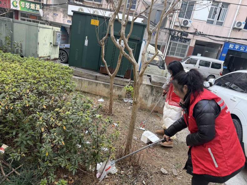 行动中,网格员们身着统一红马甲,携带夹子、垃圾袋、扫帚等工具,分工合作,对辖区内各居民楼周边的绿化带进行了“拉网式”排查与清理。他们仔细捡拾隐藏在草丛中的白色垃圾、枯枝落叶、烟头等杂物,不放过任何一个卫生死角。冬日的阳光下,网格员们忙碌的身影成为了社区里一道亮丽的风景线。
