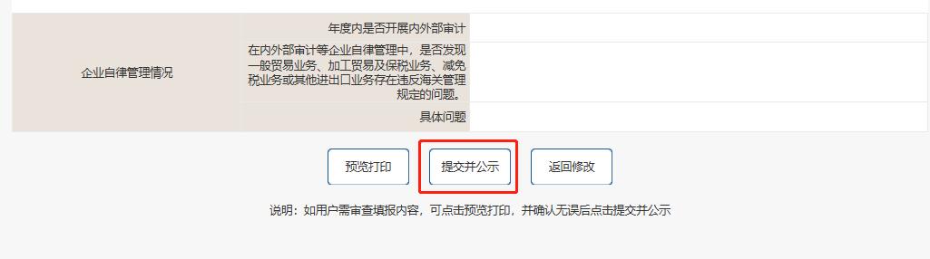 6.确认无误后点击“提交并公示”——“确定”,完成年报公示;如未点击“提交并公示”,则所填写信息仅保存成功,未进行公示,年报未完成。