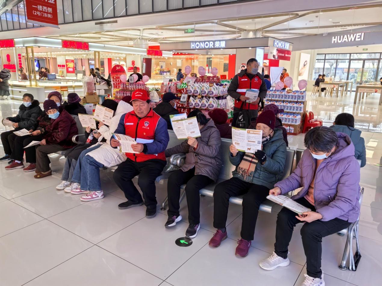 1月16日下午,山东省济阳区寒风凛冽,阴沉的天色挡不住“平安合伙人”“五老”宣传队的脚步。这支由退休老干部、老党员等组成的银发队伍,带着精心准备的宣讲稿,辗转徐家鑫苑、零工市场、大丰超市和广场,为老年居民送上一场“护好‘钱袋子’守好幸福家”的反诈“盛宴”。