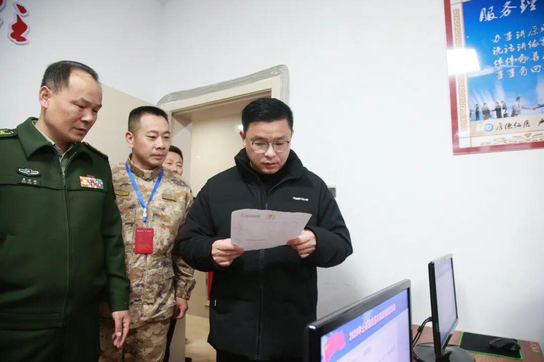 在广丰区人民医院,邓跃跃逐一走访各检查科室,详细了解体检组织流程、标准执行、医务人员配备及后勤保障等情况,并与应征青年亲切交谈,对他们立志报国、投身国防的热情给予充分肯定。