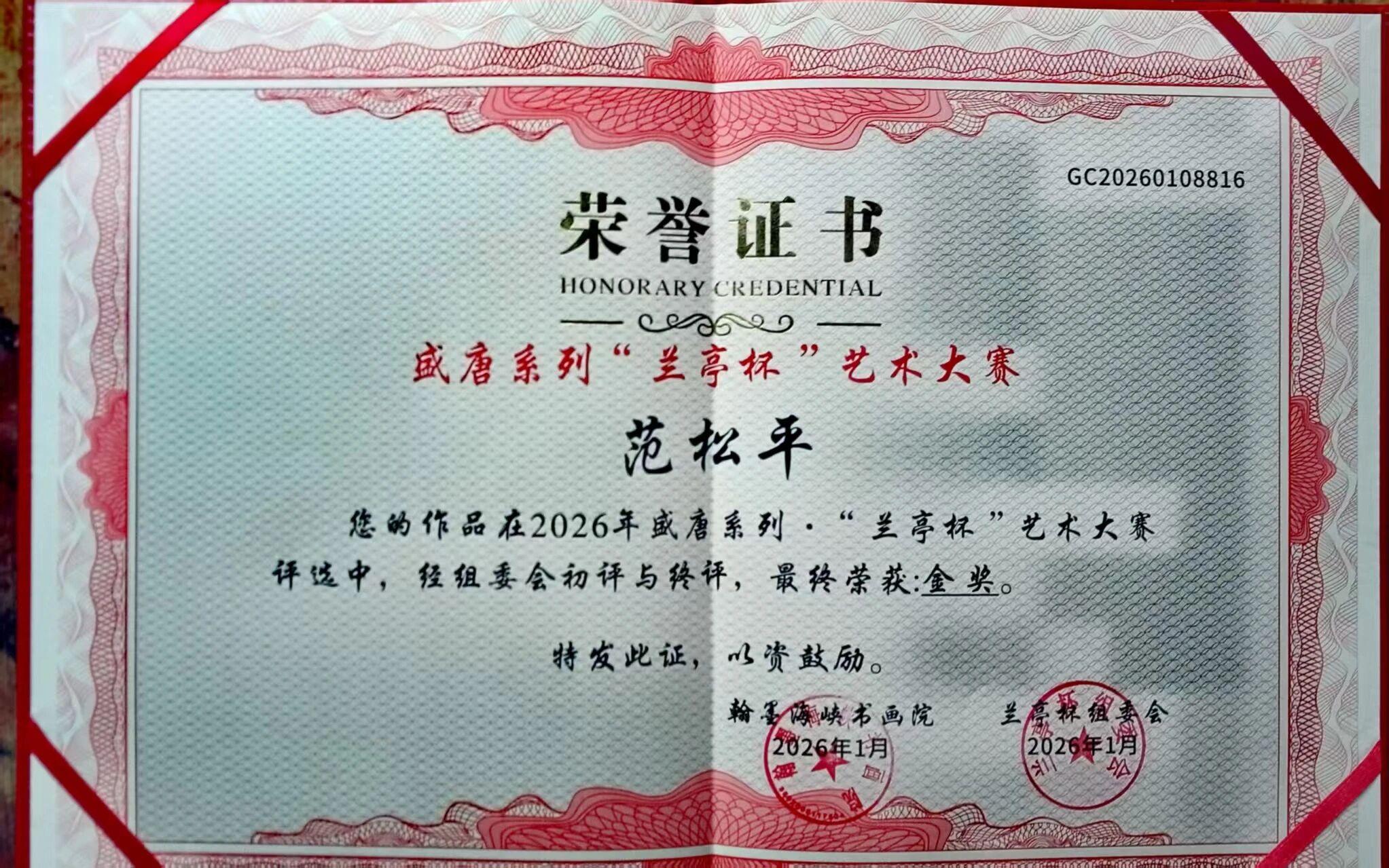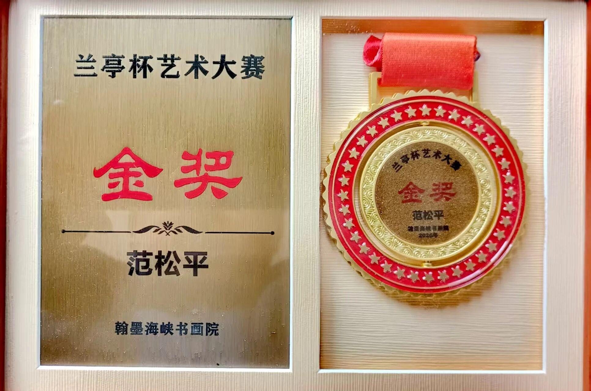 范松平先生,1954年生于江西抚州乐安,其书法以简洁、明快、刚健之风骨著称,作品深植传统,又具时代精神,备受海内外艺坛与藏家推重。尤为值得一提的是,其作品在2026年1月荣获“兰亭杯”艺术大赛金奖,成就斐然,近期斩获的荣誉更印证了其艺术生命力的蓬勃与常新。