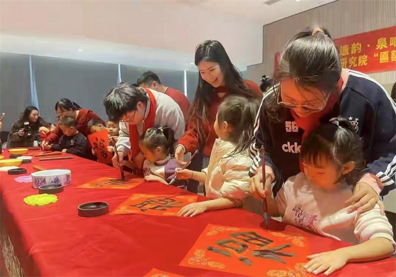 活动还专门设置了名匾临摹互动区。小朋友和游客们在这里执笔描摹匾额字迹、书写福字春联,书法名家从旁指导、纠正笔法。大家在笔墨流转间领会书法精妙,在一撇一捺中感受晋祠文化的厚重底蕴。