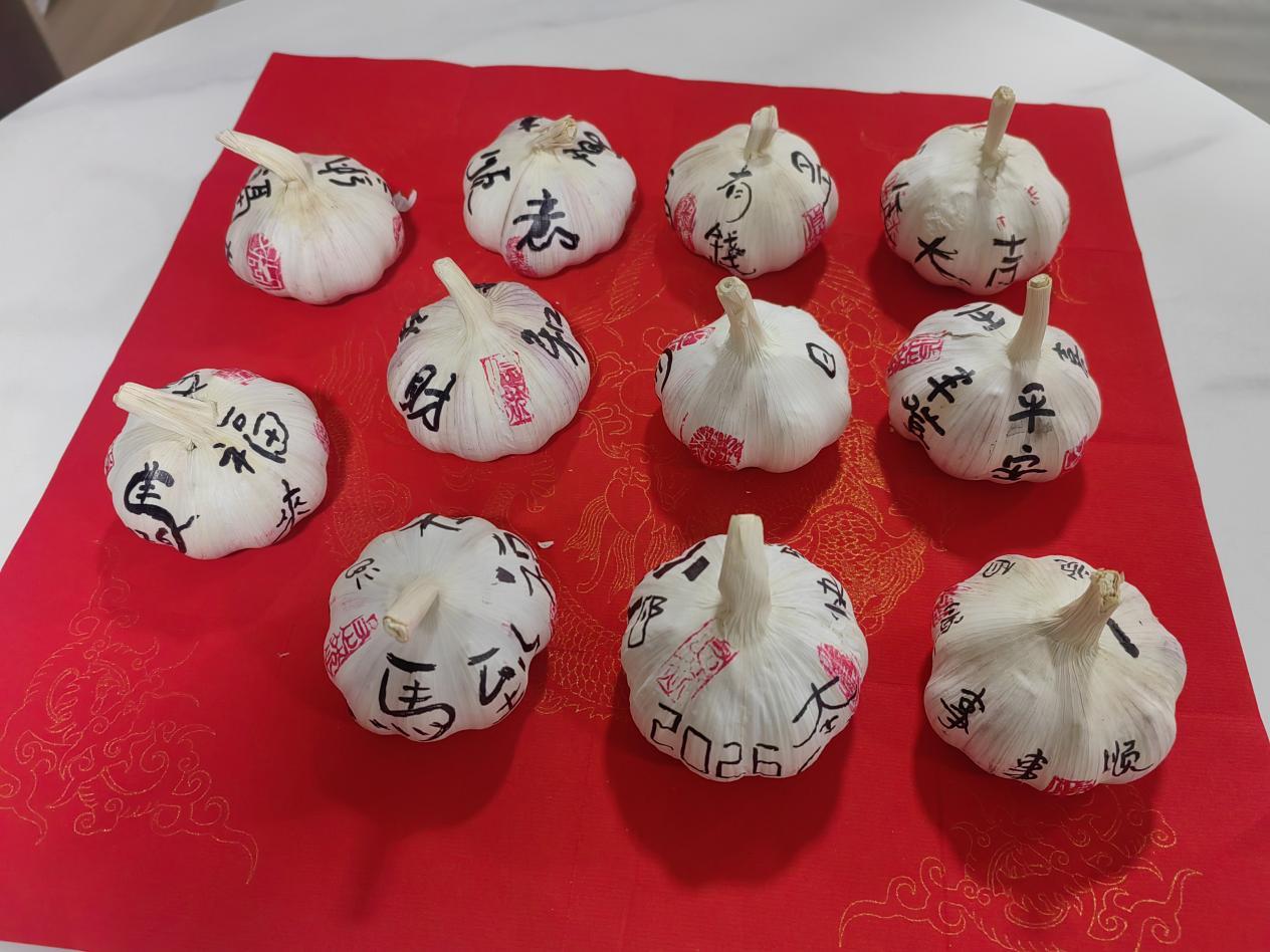 活动现场暖意融融、香气四溢。社区工作人员、物业人员、幼儿园老师们早早便忙碌起来,分工协作、有条不紊。在腊八蒜制作区域,志愿者们提前备好新鲜饱满的大蒜、陈醋、玻璃罐等材料,耐心向参与的居民们讲解腊八蒜的腌制技巧,从大蒜去皮、清水沥干、分层入罐、倒入陈醋,每一个步骤都细致演示、手把手指导。居民们还在大蒜上写下“马年大吉”“平安喜乐”等暖心祝福,一笔一画间满是真诚的祝福。现场欢声笑语不断,勾勒出一幅阳光同乐、温情满满的画面。