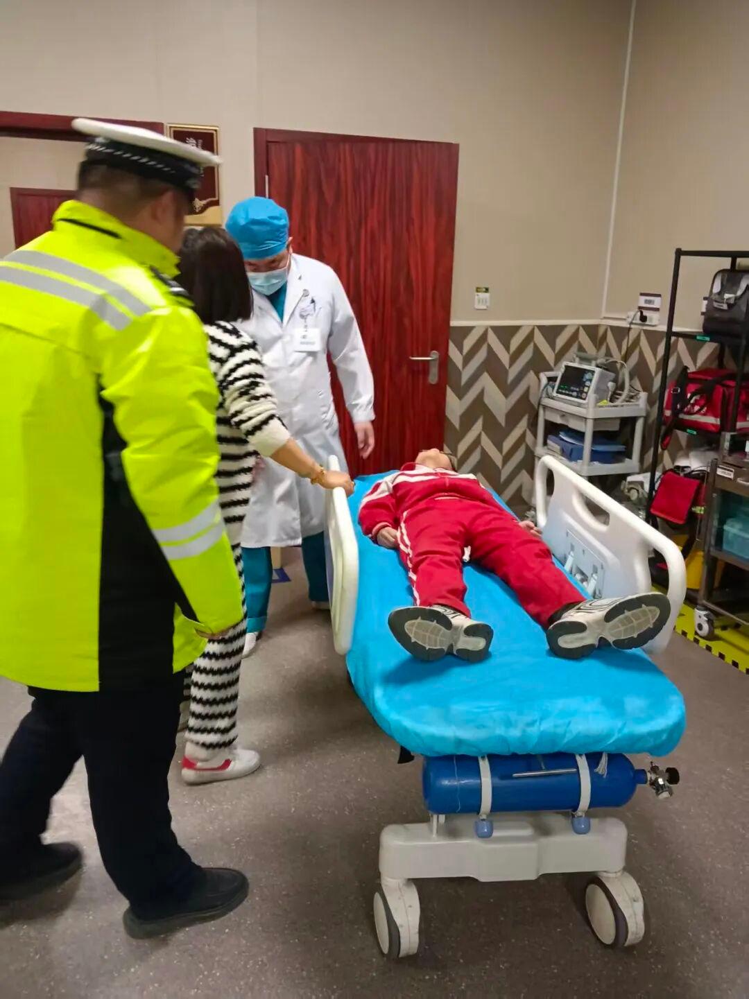 一路上,闪烁的警灯、响亮的警笛就是家长和孩子的定心丸,原本需要40分钟的路程,在民警的沿途护送下仅用了20分钟就安全抵达了医院。车刚一停稳,民警立刻跳下车跑到家长所驾驶车辆副驾驶将孩子抱下车,一路狂奔到急诊室。