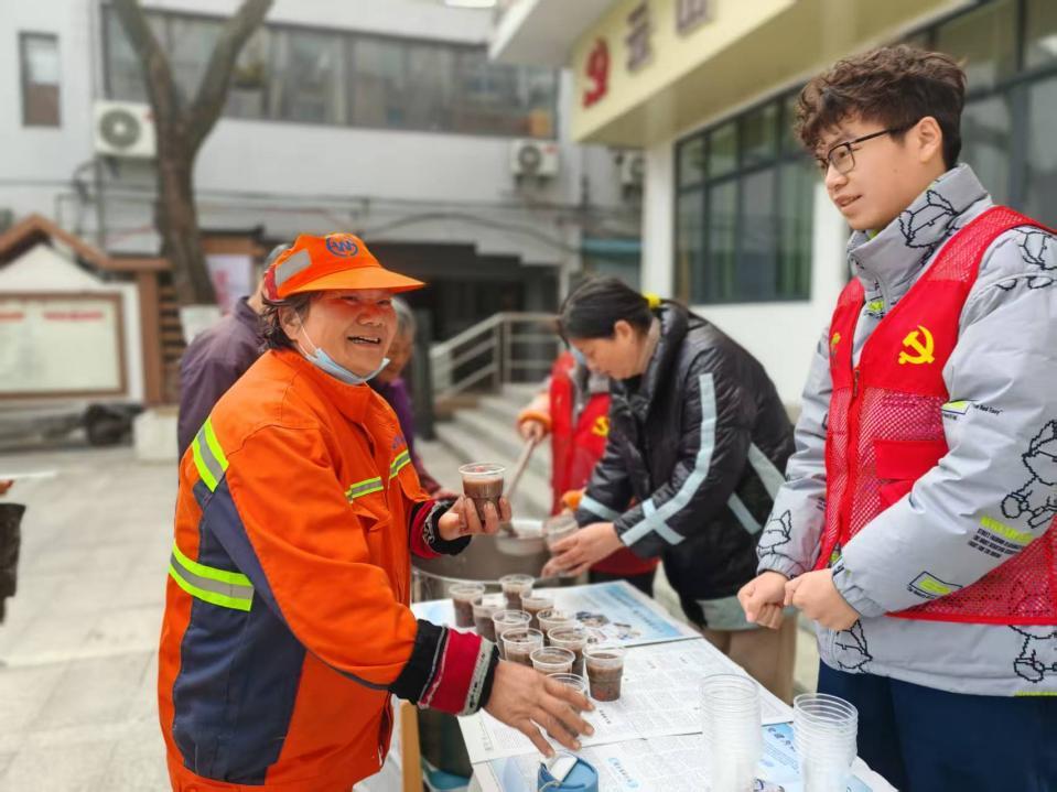 “红豆、桂圆、莲子都是昨晚泡好的,凌晨就开始熬了。”负责派粥的工作人员边说边搅动长勺。这次“粥香暖寒冬,邻里共腊八”活动选用传统配方,还特地照顾到社区老人的健康,特调出低糖版腊八粥,既保留古法风味,又融入现代健康养生巧思。环卫工人刘阿姨接过粥碗时感慨:“这粥里吃得出人情味儿。”