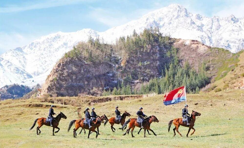 甘肃省张掖市肃南县公安局骑警队在马蹄生态文化旅游区开展巡逻