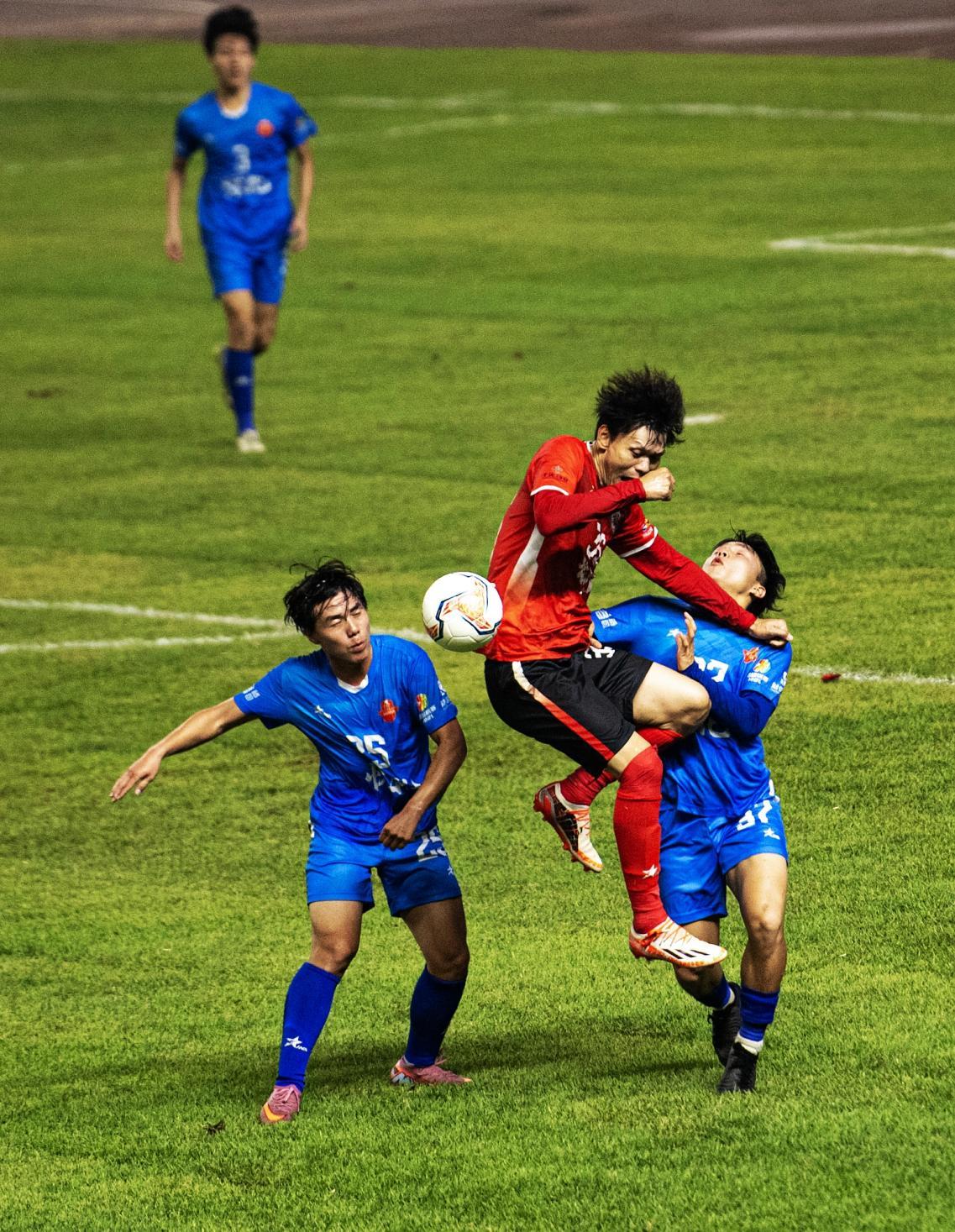 ▲10月12日晚,湘超联赛株洲赛区在市体育中心揭幕。在近四万名球迷见证下,株洲队主场3:0战胜怀化队。