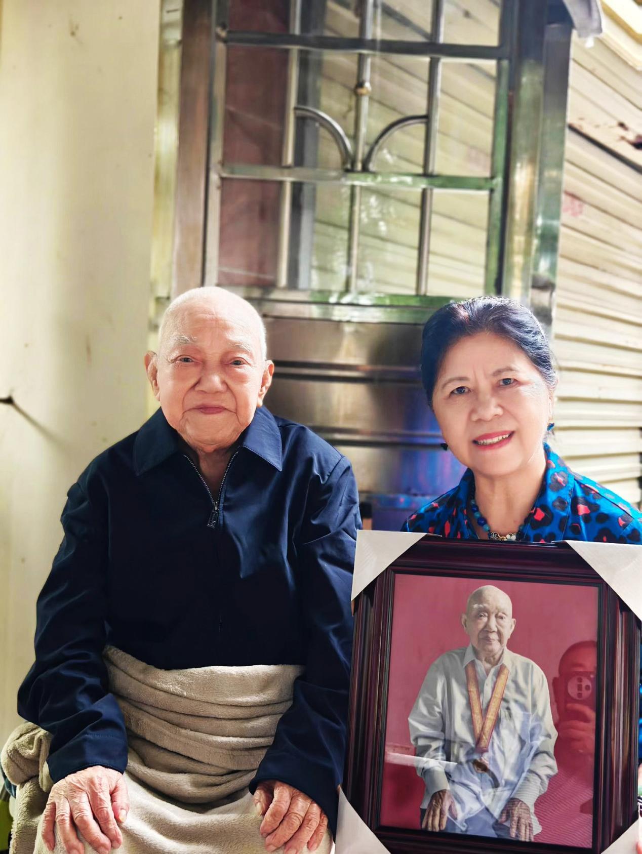 ▲9月4日下午,与湖南老兵之家志愿者一道,迎接应邀赴京现场观看中国人民抗日战争暨世界反法西斯战争胜利80周年阅兵式的百岁抗战老兵袁寿春与孙子袁华载誉归来。我特意带了相机和背景布,为袁老拍了标准照,并放大装框送给他老人家留存。
