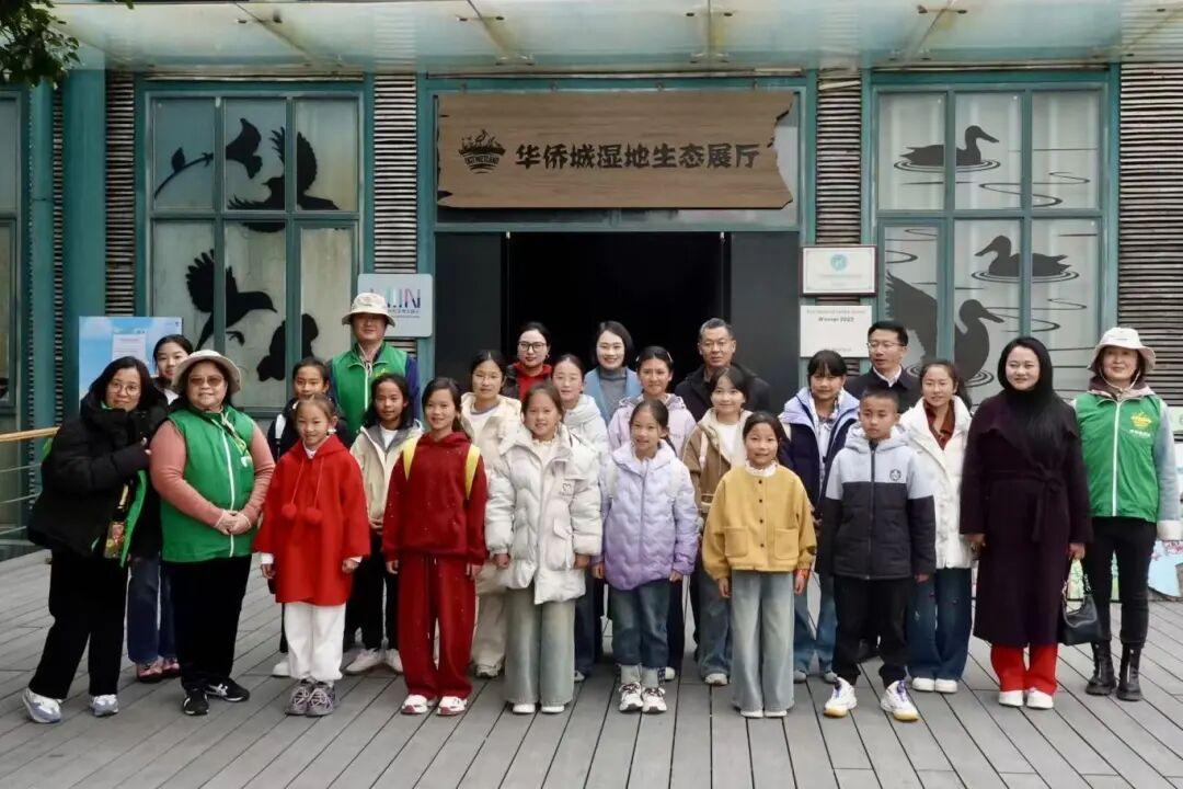 研学第一站安排在绿意盎然、鸟类繁多的华侨城湿地生态展厅。湿地保护工作人员带领孩子们辨认苍鹭、白鹭。生动有趣的讲解迅速融化了孩子们的拘谨。