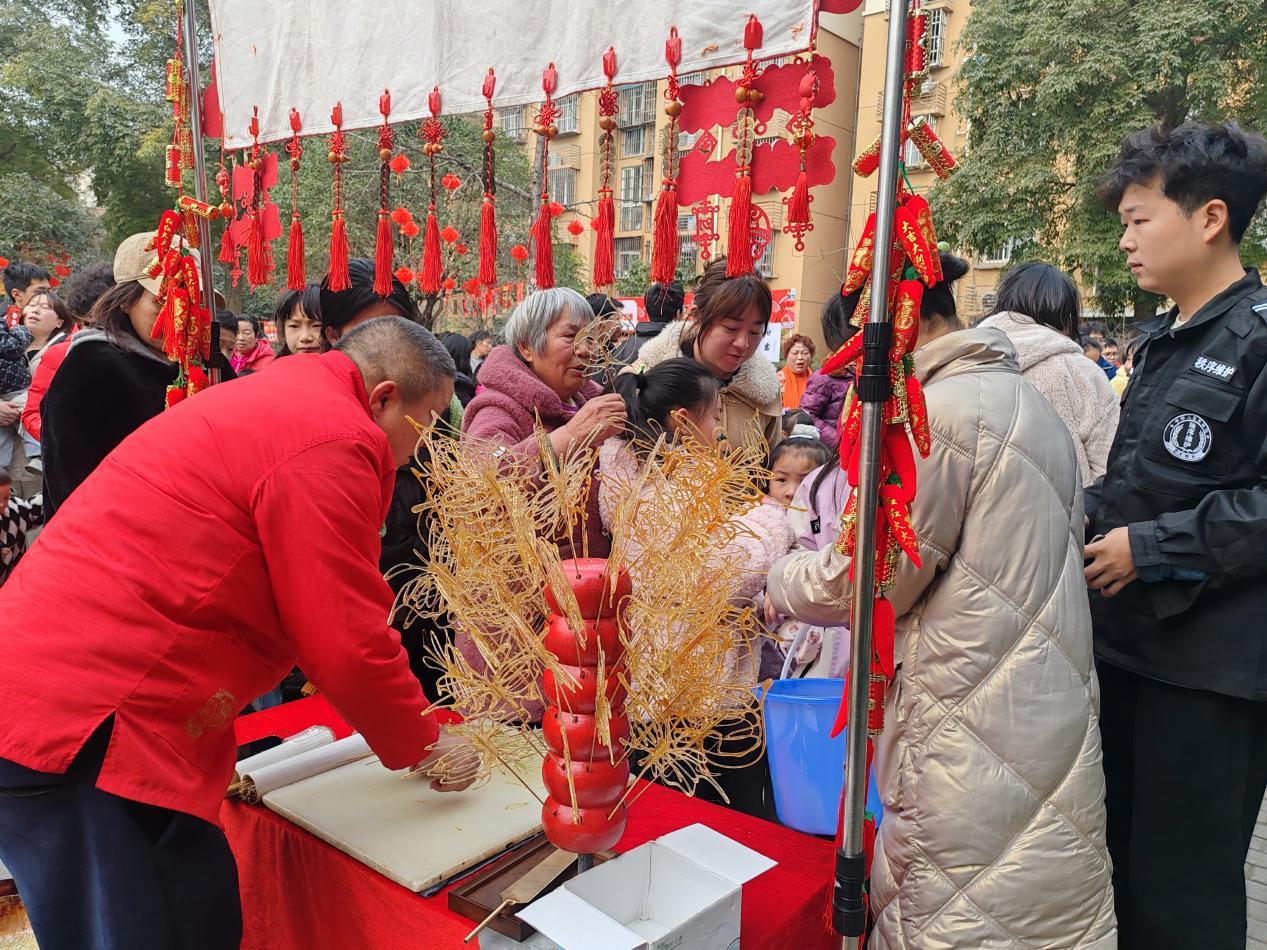 活动现场,朋友圈打卡、居民自发才艺展示同步进行,爱心义诊等暖心服务也有序开展,切实将关怀送到居民心坎上。美食区更是香气四溢,烤肠、虾片、搅搅糖、糖画等特色小吃琳琅满目,居民们凭券兑换美食,一边品尝儿时记忆中的味道,一边与邻里畅谈家常,不少居民感慨,这场活动让自己重拾了久违的浓浓年味。老老少少欢聚一堂,或嬉戏玩耍、或闲谈小憩,欢声笑语不断,尽显邻里团圆的温馨景象,完美诠释了“远亲不如近邻”的温情。