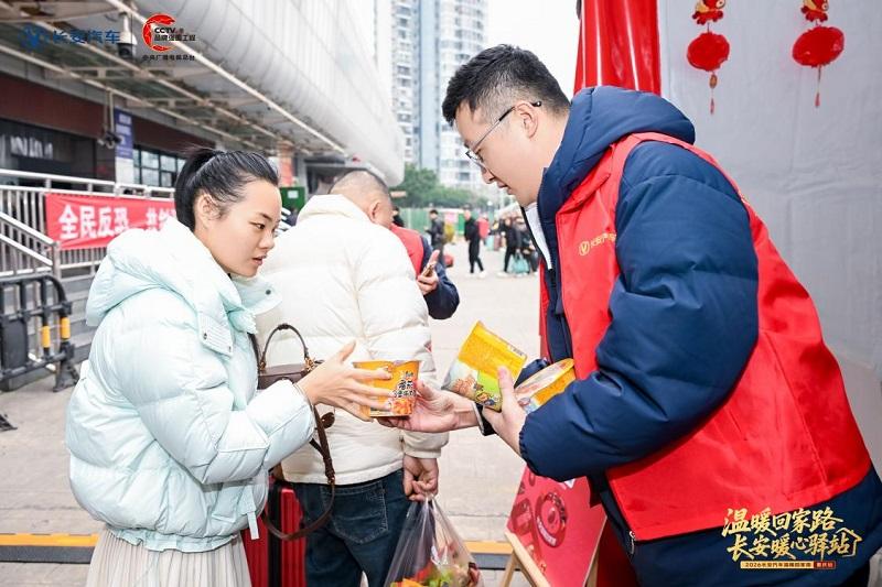 长安汽车“温暖回家路 长安暖心驿站”2026重庆北站温暖抵达