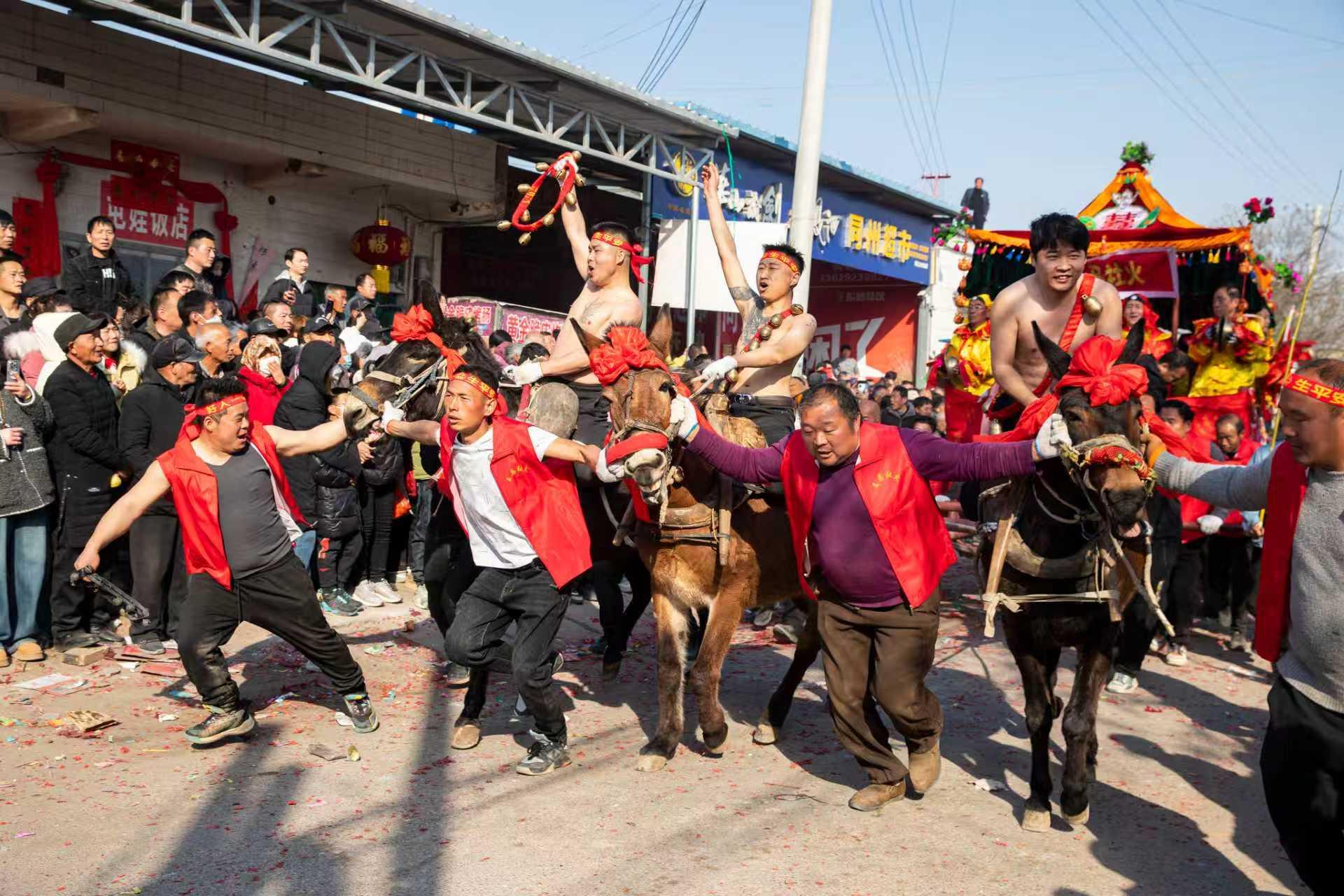 在这片热土之上,还书写着浓墨重彩的兵家传奇。公元537年,西魏宇文泰在此运筹帷幄、巧布战局,以少胜多大败东魏高欢,这场载入史册的“沙苑之战”,不仅成就了一代军事佳话,战后宇文泰更在此地“植柳纪功”,万千杨柳扎根沙苑,既见证了金戈铁马的峥嵘岁月,也让这片土地的人文底蕴愈发厚重。及至大唐盛世,沙苑的荣光更盛一筹,朝廷在此修建沙苑城,专设沙苑监司职牧马事宜,因沙苑地近长安皇城,皇家御用的良骥骏马皆蓄养于此,史书中那句“苑中騋牝三千匹”,便是彼时沙苑牧马盛况的真实写照。千百年间,沙苑百姓与马骡朝夕相伴,春耕秋收、出行劳作、运输耕耘皆与骡马相依相随,在漫长的生产生活中结下了剪不断的不解之缘。也正因这份朝夕相伴的羁绊,当地人慢慢孕育出模仿古代战车的民俗娱乐形式,也衍生出祈求风调雨顺、庆贺五谷丰登的祭社祈福习俗,大荔跑骡车,便在这样深厚的历史沃土与民俗根基中破土而生,一步步成为沙苑大地上最具代表性的民俗文化符号。