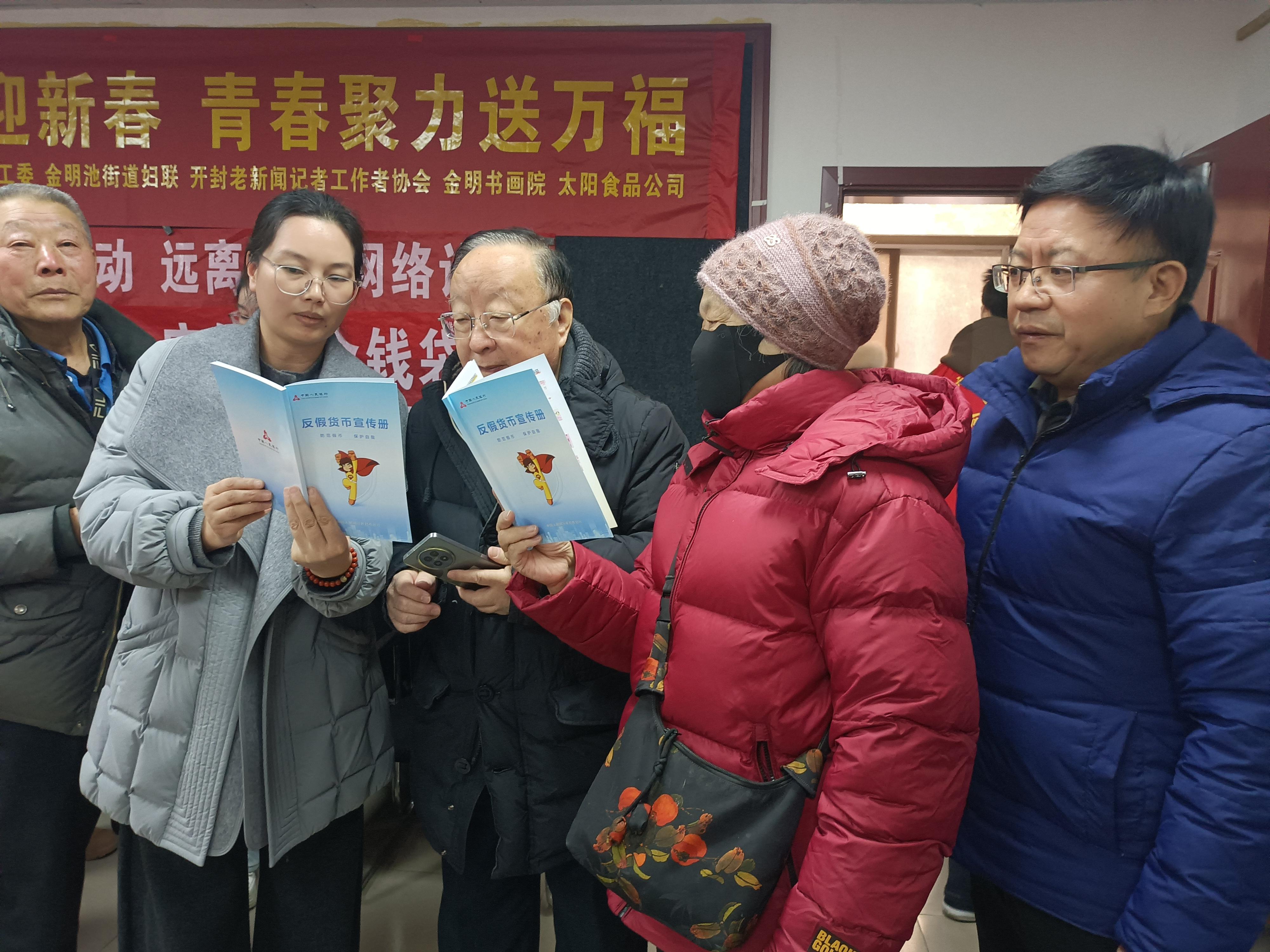在文化送福的同时,平安银行开封分公司的金融宣讲团队同步开展“守好群众钱袋子”金融安全宣传活动。宣讲人员结合近期高发的电信网络诈骗、虚假投资理财、养老诈骗等案例,用通俗易懂的语讲解防范技巧,重点提醒居民警惕“陌生链接不点击、个人信息不泄露、转账汇款多核实”,筑牢金融安全“防护网”。现场还设置了扫码竞答环节,同志们参与即可获得精美小礼品,在趣味互动中学习金融反诈知识,有效提升了宣传的趣味性与实效性。