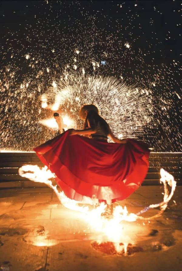 活动内容:打铁花表演随着表演者挥动手臂,金色火花在夜空中绚烂绽放,像黑夜中散落的星子一般铁树银花、遍地星河,为游客带来极致的视觉享受。火秀表演是一种将火焰与舞蹈相结合的艺术形式,具有极强的视觉冲击力。表演者们将在火中舞蹈,用火焰描绘出各种美丽的图案,为游客带来一场独一无二的视觉盛宴。