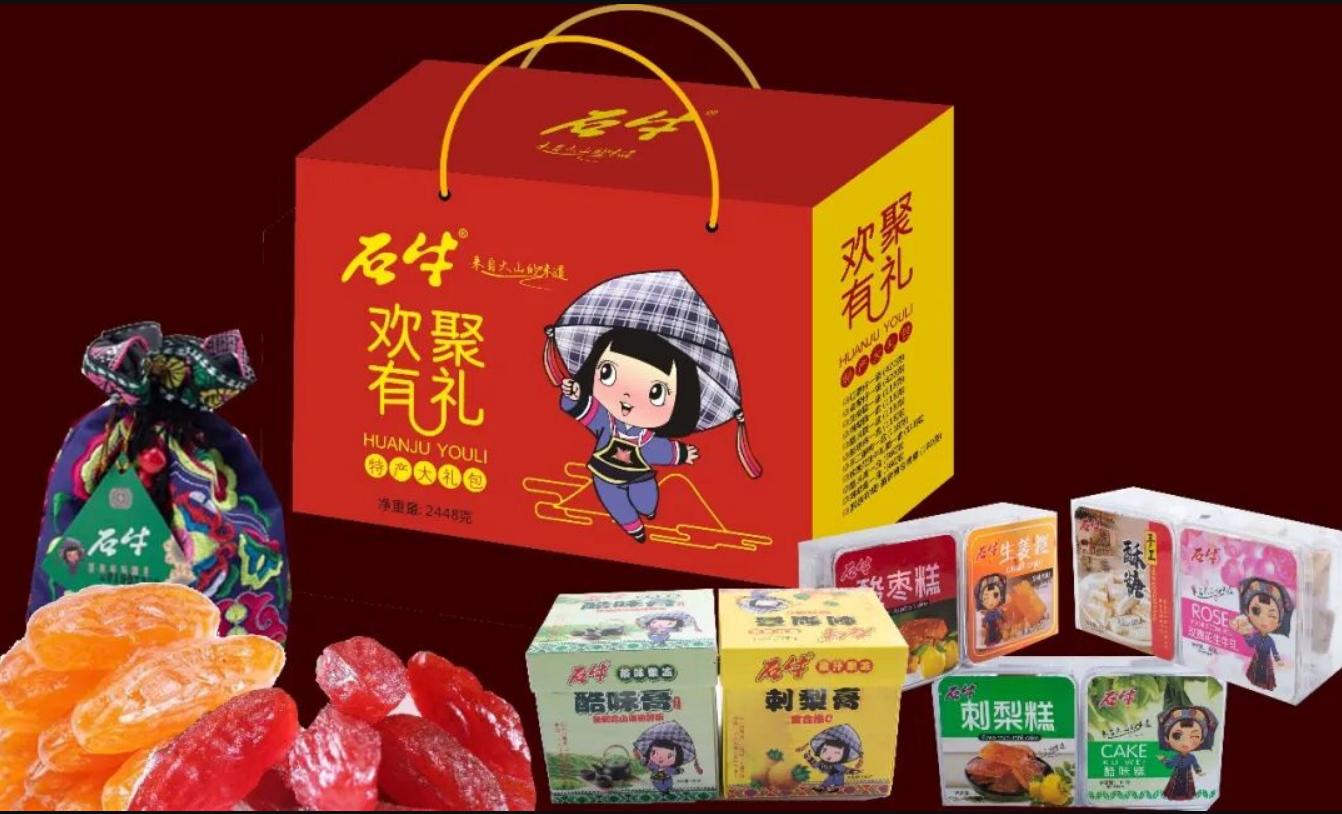 在省、州市场监管、商务等部门的品牌培育与市场推广支持下,石牛食品综合产业集群打造“石牛”核心品牌为主、“好花红”“水妹子”“苗娃子”子品牌为辅的品牌矩阵,政府部门牵头组织企业参与国内外各类食品博览会、农特产品交易会,为石牛品牌搭建展示推广平台。“石牛牌”系列糖果2007年荣获“贵州省名牌产品”,石牛商标荣获“贵州省著名商标”,刺梨糕被编入《中国特产大典·贵州卷》,成为贵州特色食品标志性品牌。构建“国内全域覆盖+海外辐射拓展”的营销网络,在商务部门的跨境贸易政策扶持、渠道对接下,产品热销全国20余个省市,并远销越南、泰国、缅甸等东南亚国家;创新“线下直营店+线上直播电商”融合模式,在文旅、商务部门指导下打造石牛食品批发超市、工厂直营店,通过抖音直播打通产销对接新渠道,让贵州黔味通过品牌集群走向更广阔市场。