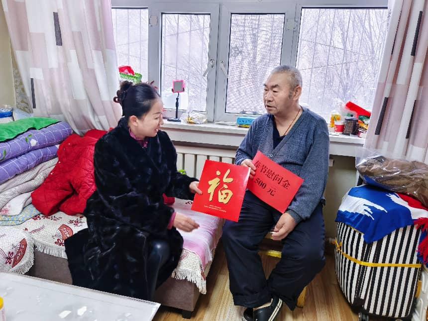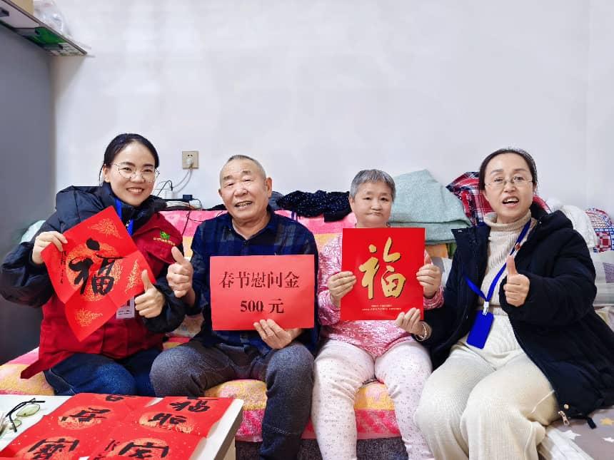 慰问组首站踏入了一户多残的何道琼老人家中。74岁的何道琼常年瘫痪在床,老伴也因重残行动艰难,生活无法自理。李燕书记俯身细问健康与冷暖,叮嘱网格员务必落实帮扶;聂莹书记则握紧老人的手,温言鼓励。当火红的春联、“福”字和慰问金递到手中,老人眼眶湿润,连声道谢:“你们总惦记着我们……”冬日的陋室,因这份牵挂而暖意融融。